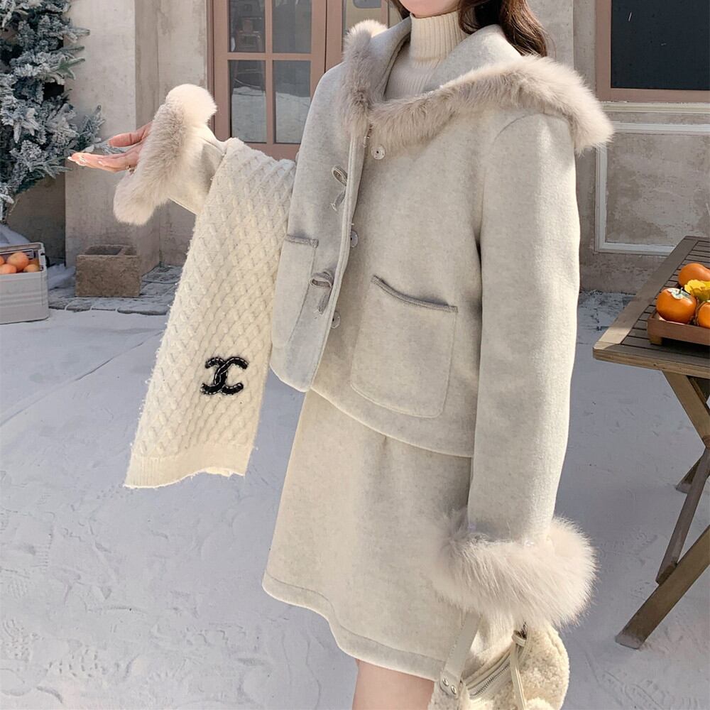 セットでの着用はもちろん単品使いもしやすく、冬のお出かけやデートシーンを特別な気分にさせてくれる一着です。