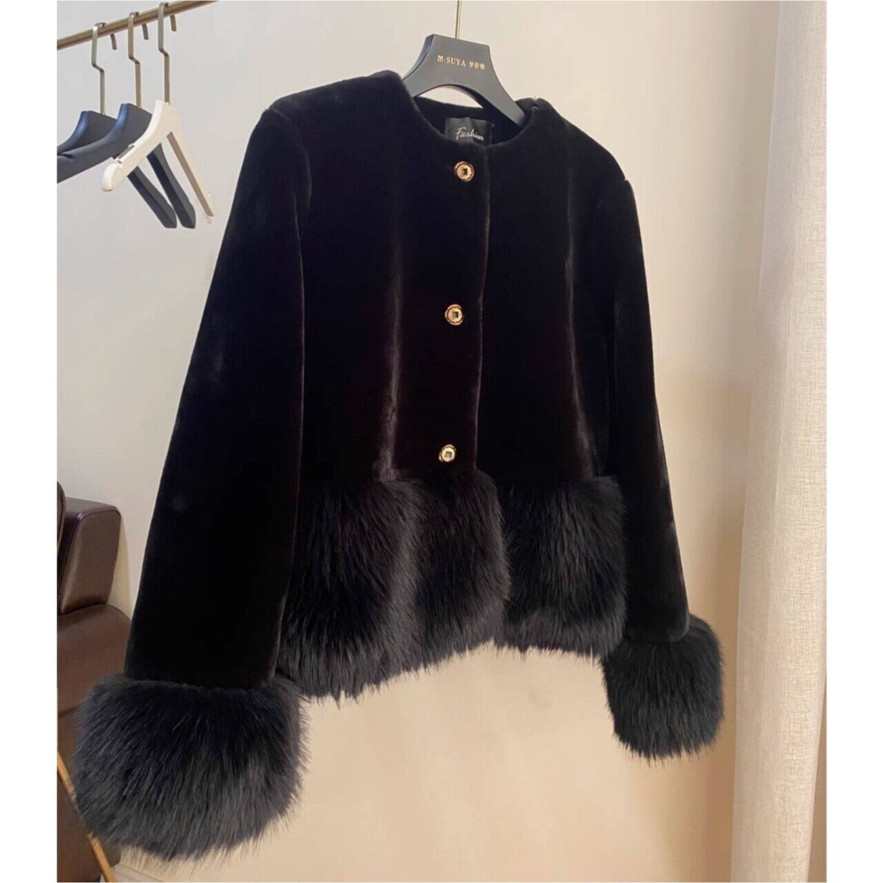 フェイクファー切替ノーカラージャケット 00402
