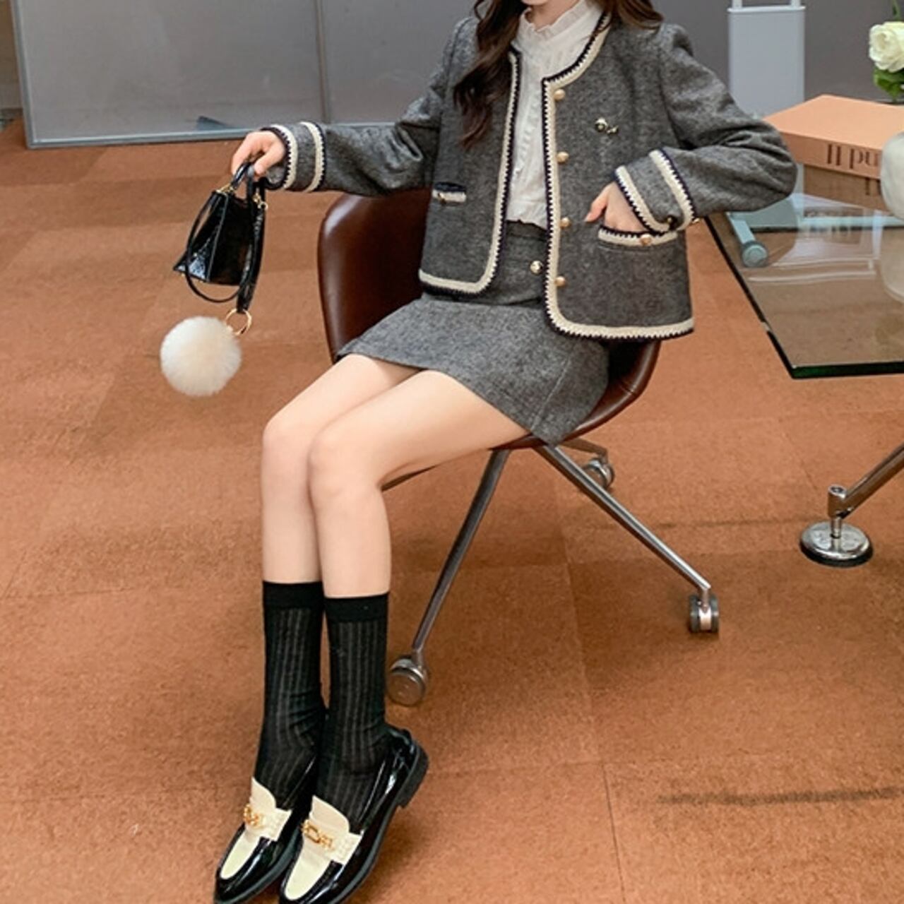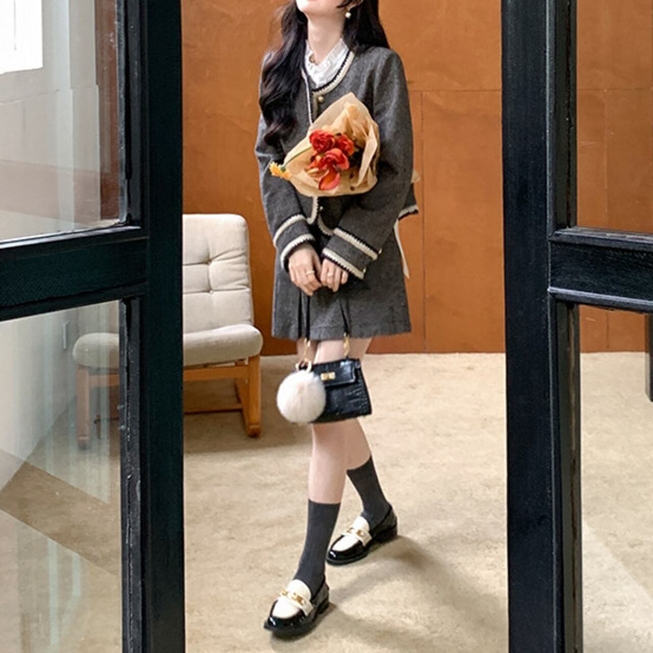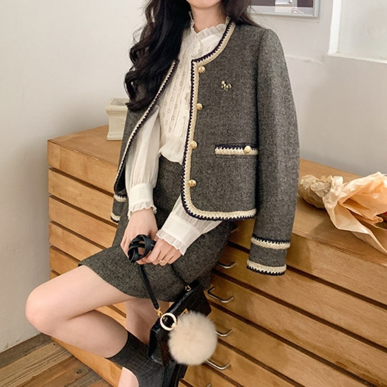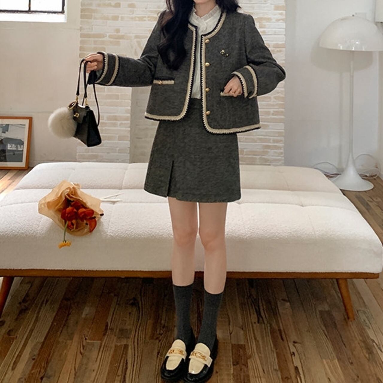 ホワイトのトリムが映えるショート丈のノーカラージャケット。 コンパクトなシルエットで、スタイルアップ効果も期待できます。 ワンピースやブラウスと合わせて、上品な着こなしを楽しんで。 ◼️サイズ 【XS】 肩幅:36cm 胸囲:96cm 着丈:50cm 袖丈:57.5cm 袖口:27.5cm 【S】 肩幅:37cm 胸囲:100cm 着丈:51cm 袖丈:58.5cm 袖口:28.5cm 【M】 肩幅:38cm 胸囲:104cm 着丈:52cm 袖丈:59.5cm 袖口:29.5cm 【L】 肩幅:39cm 胸囲:108cm 着丈:53cm 袖丈:60.5cm 袖口:30.5cm ※採寸方法により1~3cmの誤差がある場合がございます ◼️カラー グレー ◼️素材 表地:ウール48.7%、ポリエステル47.4%、その他3.9% 裏地:ポリエステル91%、ポリウレタン7% 【お届けについて】 こちらの商品は海外店舗より直接発送となる為、ご入金から1〜3週間でお届けいたします。 ◼️注意事項 ・タイミングによっては 商品在庫切れにより注文キャンセルとさせていただく恐れもございますので、予めご了承くださいませ。 ・日本製とは検品基準が異なる為、縫製などが若干甘い場合があります。 ・海外倉庫にて保管をしております。在庫情報に時差が生じますため在庫切れや生産中止、生産に遅れがある場合は、受注後でもキャンセルさせていただく恐れがございます。 ・商品の色味は、お手持ちのスマートフォンの画面によって実物と若干異なる場合がございます。 ・発送時期によりデザイン仕様(細部、素材など)の変更がある場合がございます。 ・イメージ違いやサイズ交換等、お客さまご都合による交換、返品は対応出来かねます。 ———————————— 誠に恐れ入りますが、ご購入前に以下をご確認頂きご承諾の上お買い求めくださいませ。 →https://petitelune.official.ec/about ————————————