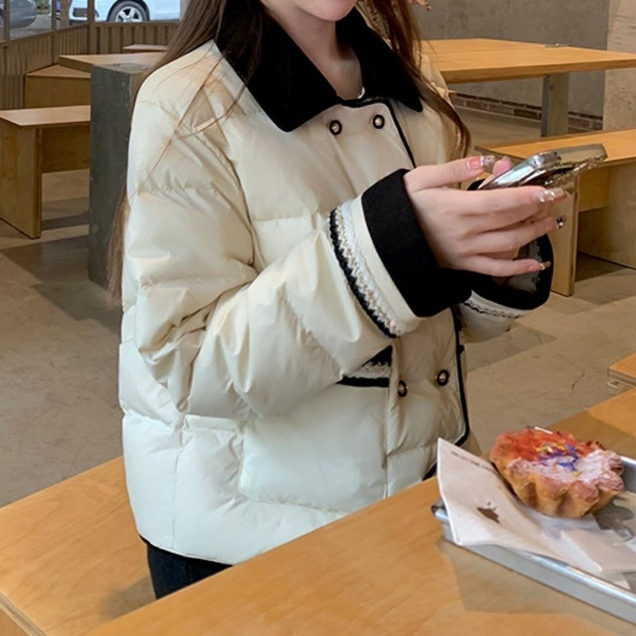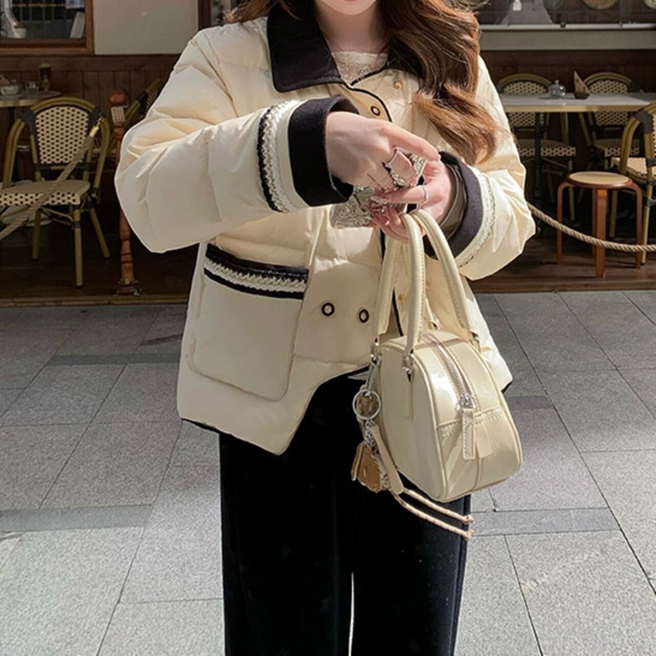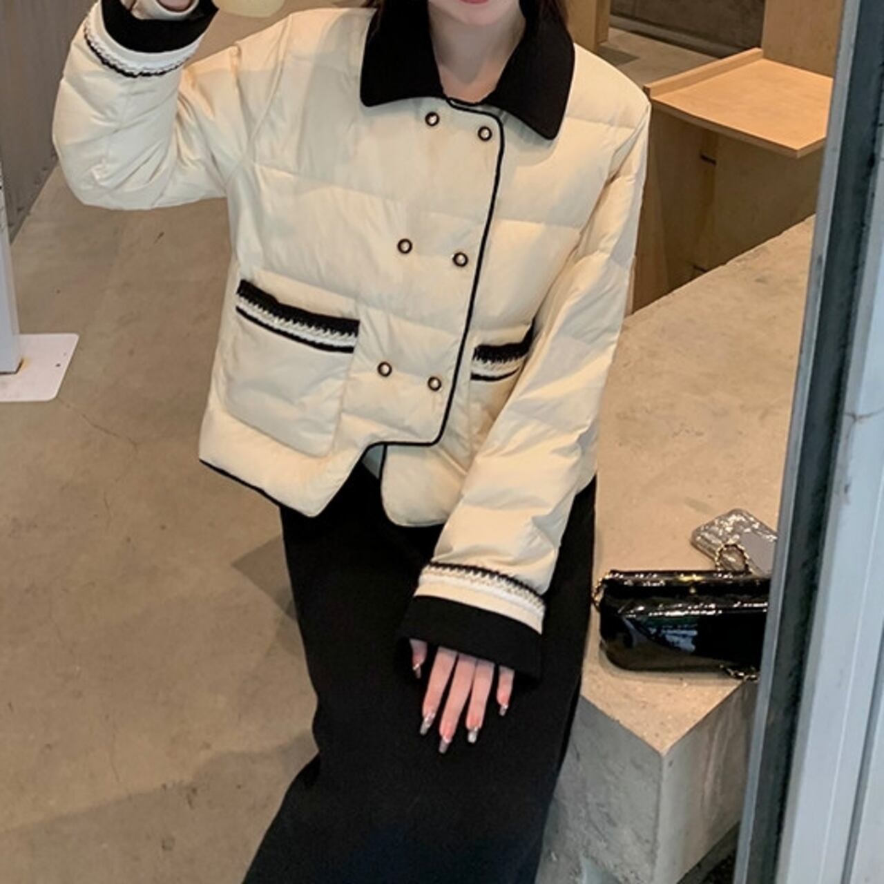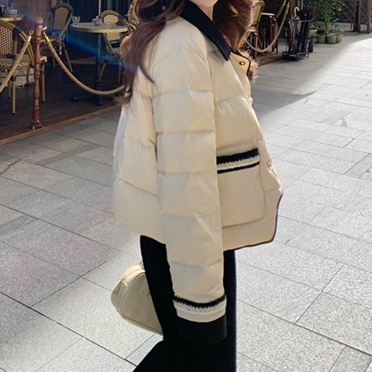 クラシカルなボタンのダブルブレストデザインが目を引くダウンジャケット。 カジュアルなパンツスタイルにも、フェミニンなスカートにも合わせやすい丈感なので、普段使いしやすい一枚です。 バイカラー配色ががアクセントになり、デザイン性も◎ ◼️サイズ 【XS】肩幅:41cm 胸囲:107cm 着丈:53.5cm 袖丈:56cm 【S】 肩幅:42cm 胸囲:111cm 着丈:54.5cm 袖丈:57cm 【M】 肩幅:43cm 胸囲:115cm 着丈:55.5cm 袖丈:58cm 【L】 肩幅:44cm 胸囲:119cm 着丈:56.5cm 袖丈:59cm ◼️カラー ライトベージュ ◼️素材 ポリエステル100% 襟、袖口:ポリエステル78%、レーヨン20%、ポリウレタン2% 【お届けについて】 こちらの商品は海外店舗より直接発送となる為、ご入金から1〜3週間でお届けいたします。 ◼️注意事項 ・タイミングによっては 商品在庫切れにより注文キャンセルとさせていただく恐れもございますので、予めご了承くださいませ。 ・日本製とは検品基準が異なる為、縫製などが若干甘い場合があります。 ・海外倉庫にて保管をしております。在庫情報に時差が生じますため在庫切れや生産中止、生産に遅れがある場合は、受注後でもキャンセルさせていただく恐れがございます。 ・商品の色味は、お手持ちのスマートフォンの画面によって実物と若干異なる場合がございます。 ・発送時期によりデザイン仕様(細部、素材など)の変更がある場合がございます。 ・イメージ違いやサイズ交換等、お客さまご都合による交換、返品は対応出来かねます。 ———————————— 誠に恐れ入りますが、ご購入前に以下をご確認頂きご承諾の上お買い求めくださいませ。 →https://petitelune.official.ec/about ————————————