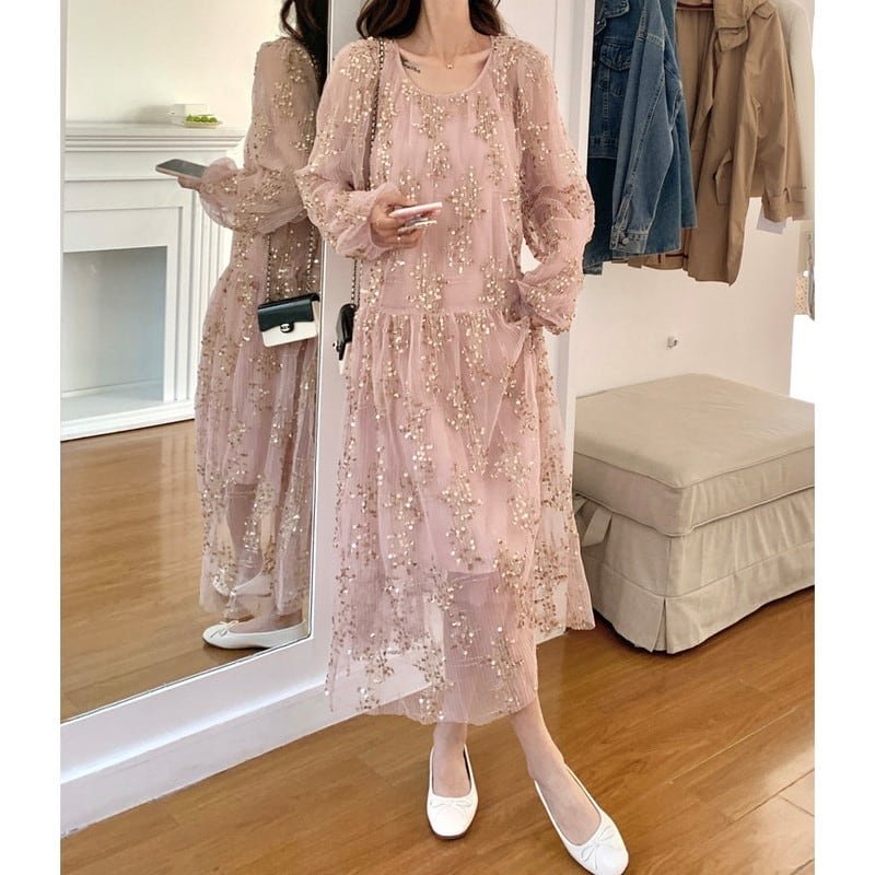繊細なチュール素材に贅沢なスパンコール刺繍を散りばめた、きらびやかで華やかなロングワンピースです。 光を反射して輝く刺繍が、動くたびに表情を変え、パーティーシーンや特別な日を彩る主役級のデザイン。 ふんわりとしたボリューム袖と透け感のある裾が、女性らしく軽やかで幻想的なシルエットを演出してくれます。 裏地付きなので一枚で安心して着用でき、大人のフェミニンを存分に引き出してくれる優雅な一着です。 ◼️サイズ 【S】 胸囲:107cm 着丈:114cm 袖丈:61cm 【M】 胸囲:111cm 着丈:115cm 袖丈:62cm 【L】 胸囲:115cm 着丈:116cm 袖丈:63cm 【XL】 胸囲:119cm 着丈:117cm 袖丈:64cm ◼️カラー ピンク ◼️素材 ポリエステル100% 【お届けについて】 こちらの商品は海外店舗より直接発送となる為、ご入金から1〜3週間でお届けいたします。 ◼️注意事項 ・タイミングによっては 商品在庫切れにより注文キャンセルとさせていただく恐れもございますので、予めご了承くださいませ。 ・日本製とは検品基準が異なる為、縫製などが若干甘い場合があります。 ・海外倉庫にて保管をしております。在庫情報に時差が生じますため在庫切れや生産中止、生産に遅れがある場合は、受注後でもキャンセルさせていただく恐れがございます。 ・商品の色味は、お手持ちのスマートフォンの画面によって実物と若干異なる場合がございます。 ・発送時期によりデザイン仕様(細部、素材など)の変更がある場合がございます。 ・イメージ違いやサイズ交換等、お客さまご都合による交換、返品は対応出来かねます。 ———————————— 誠に恐れ入りますが、ご購入前に以下をご確認頂きご承諾の上お買い求めくださいませ。 →https://petitelune.official.ec/about ————————————