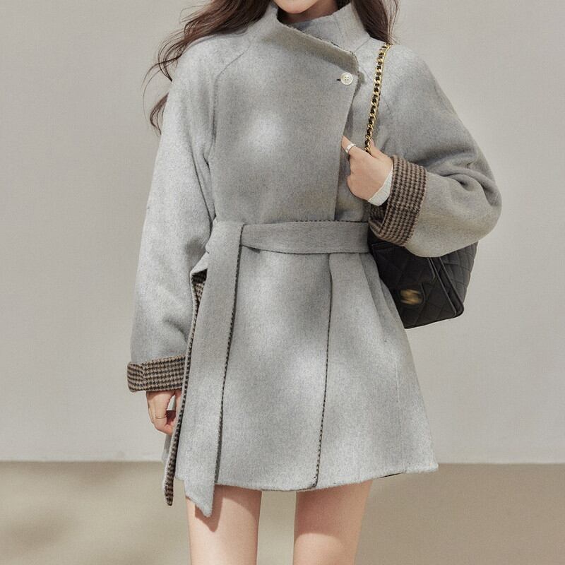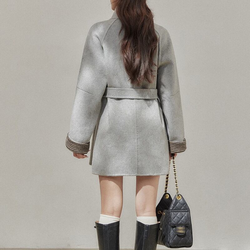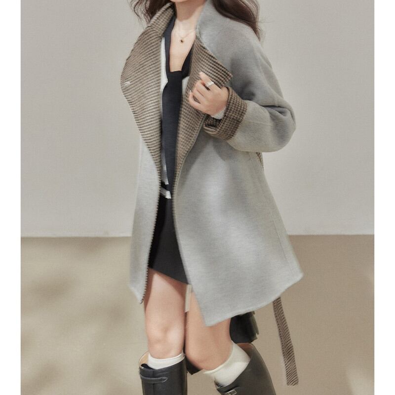 大きな襟と袖口から覗くクラシカルなチェック柄が、コーディネートにトラッドなアクセントを添えるコートです。