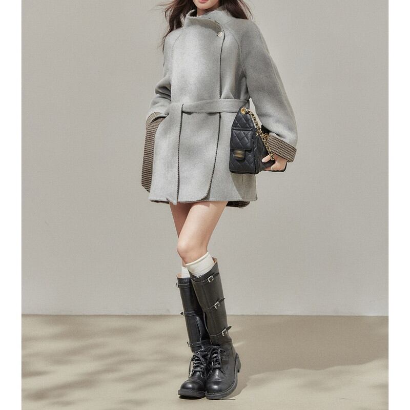 ゆとりのあるドロップショルダーで厚手のニットも着込みやすく、冬のデイリースタイルに重宝する上品な一着です。