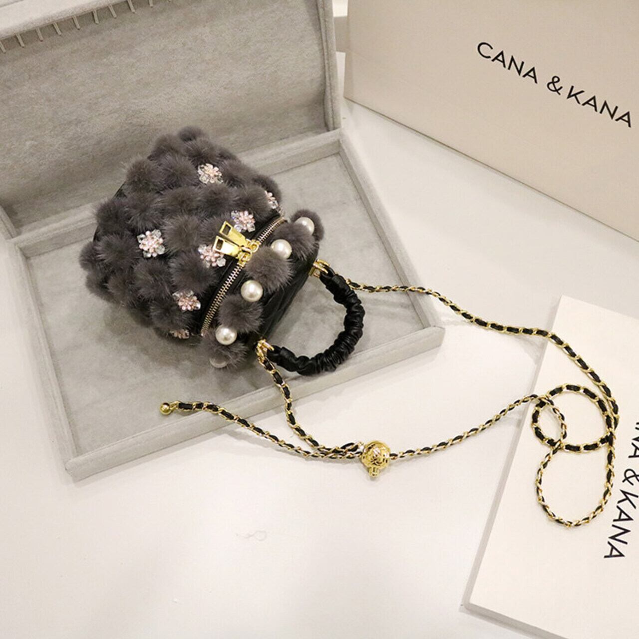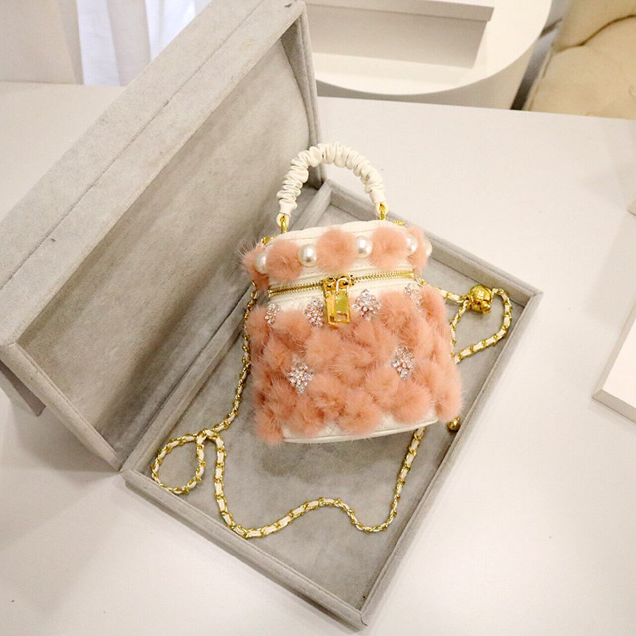 アクセサリー感覚で持てるフェイクファーが存在感抜群のチェーンストラップのミニバッグ。