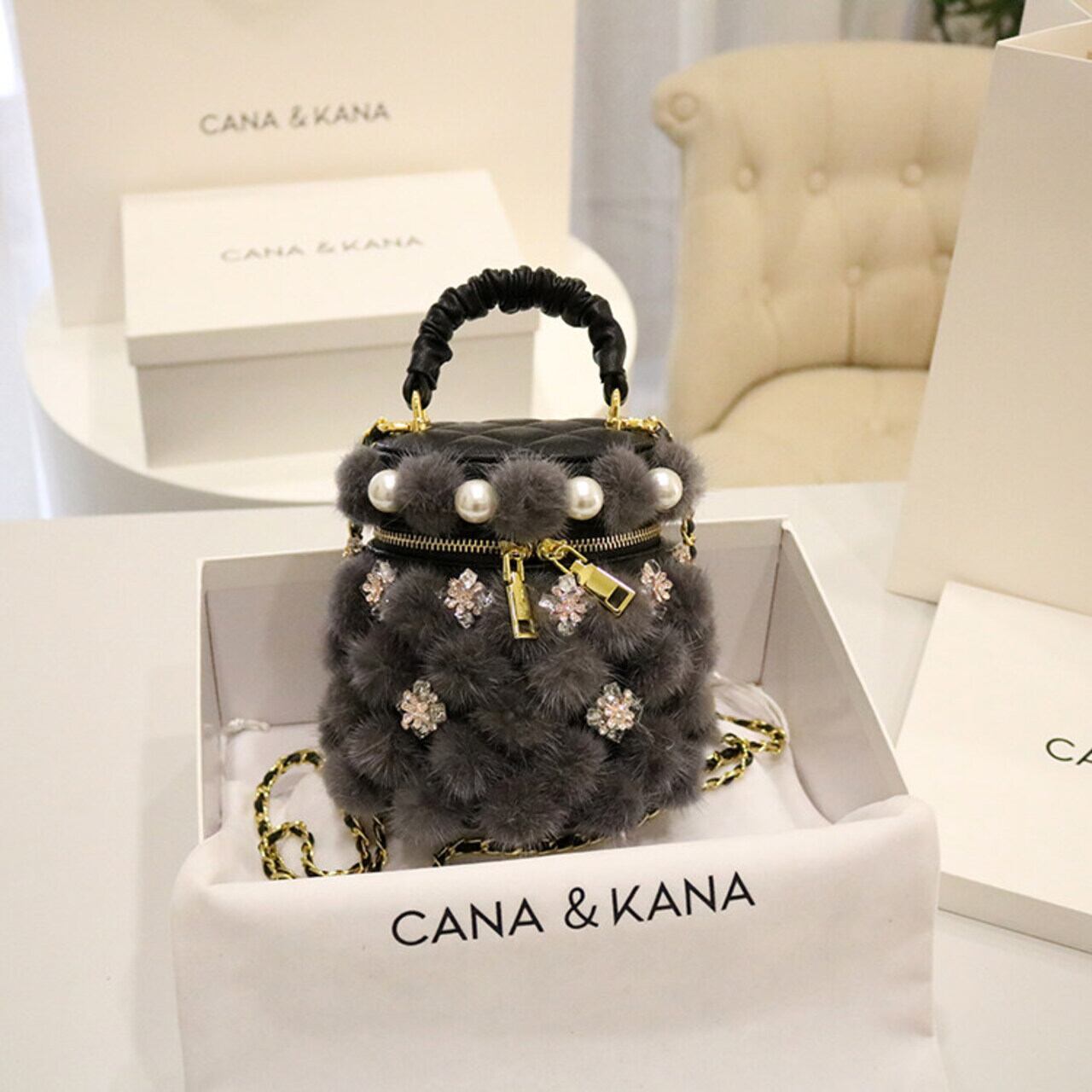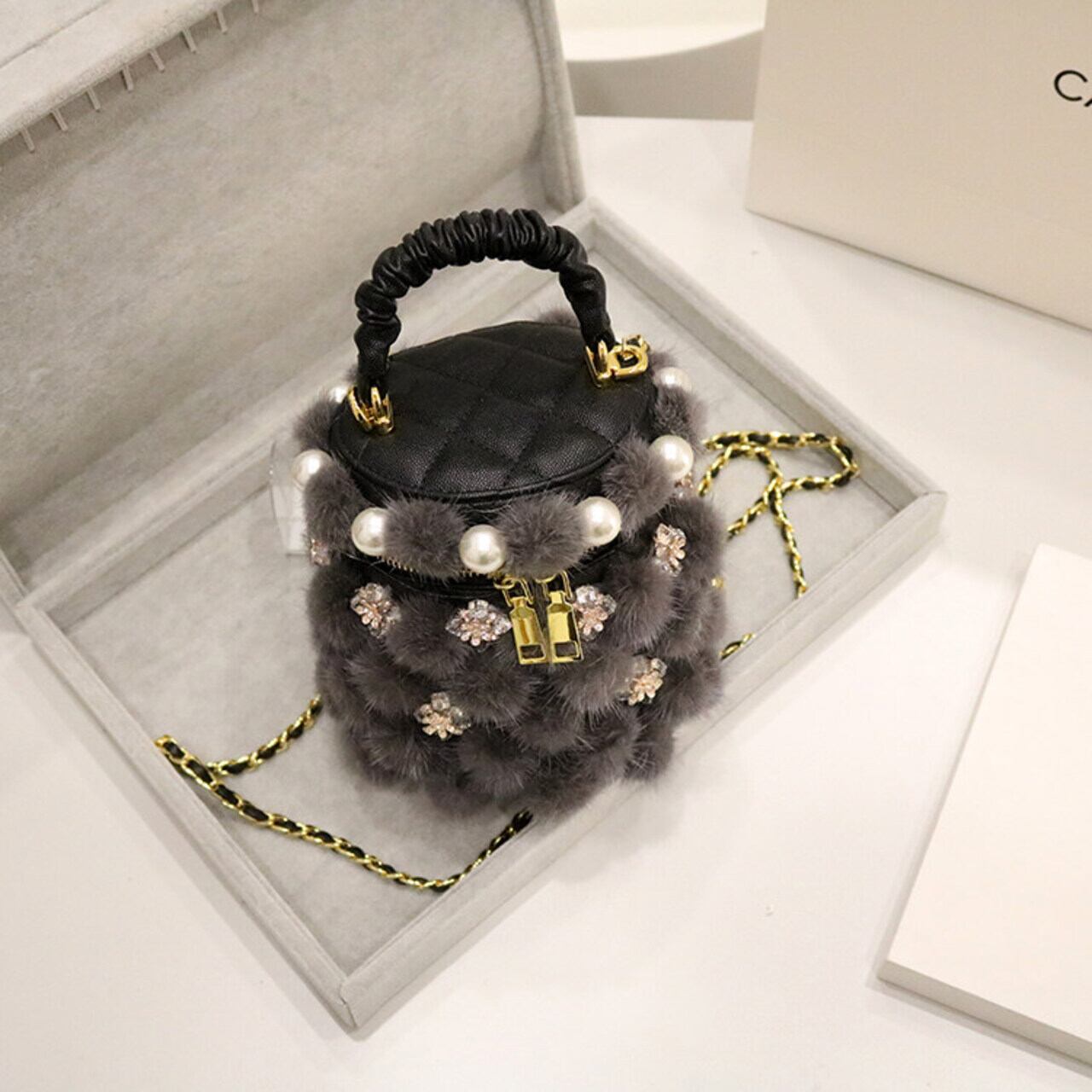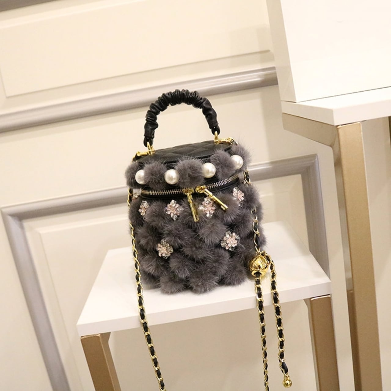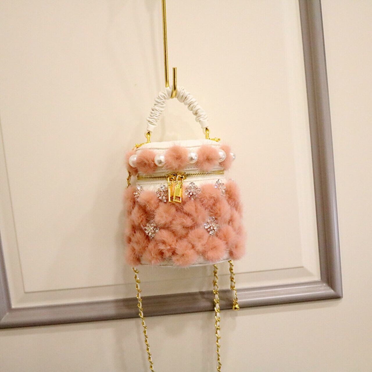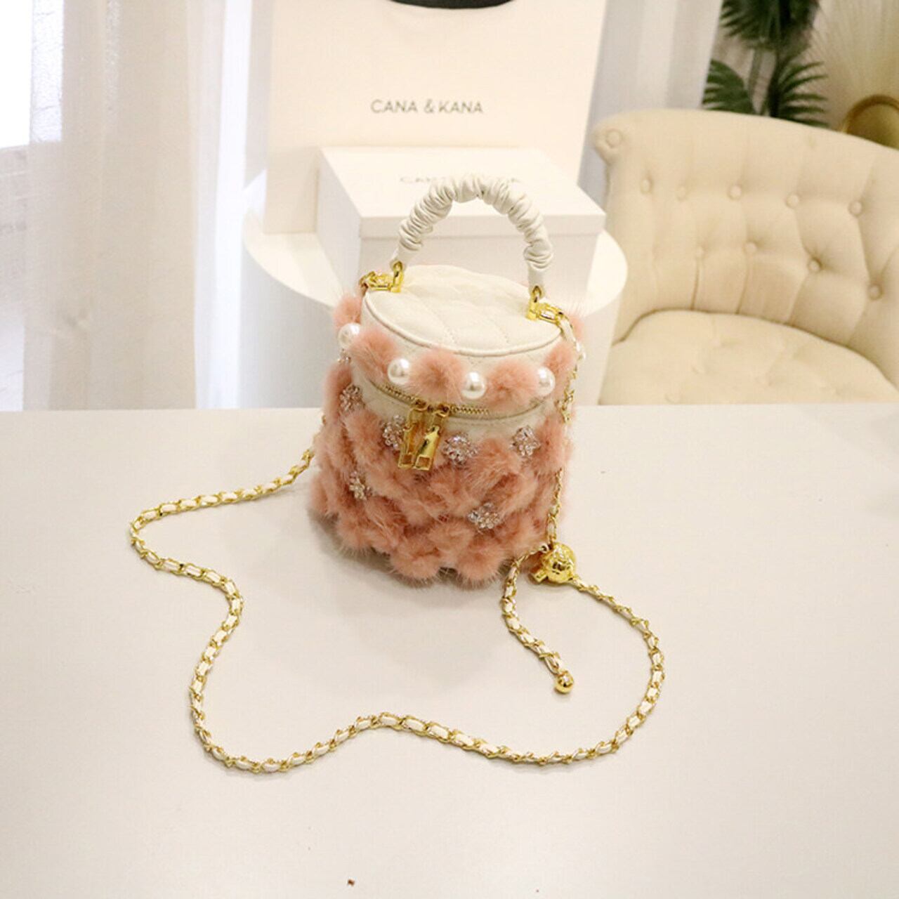 フェイクファー パールビジュー バケツバッグ 2 col00405
