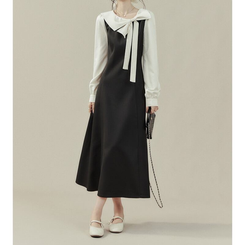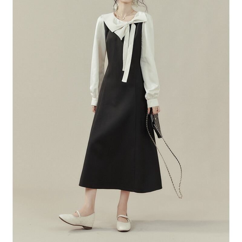 ブラウスとジャンスカを重ね着したような、一枚で完成度の高い装いを叶えてくれるドッキングワンピースです。