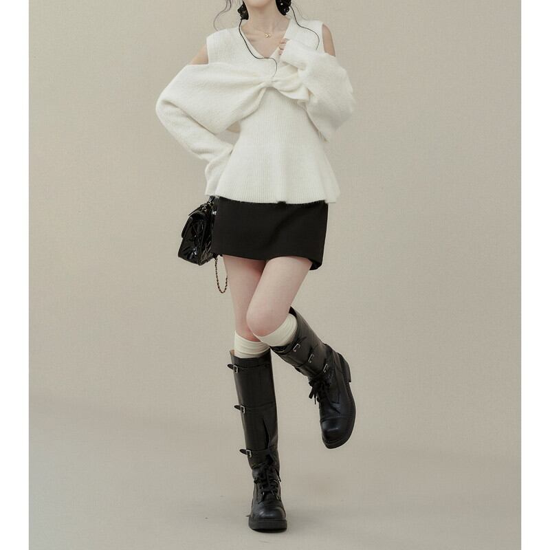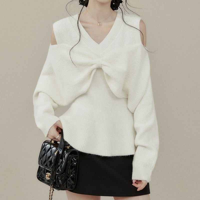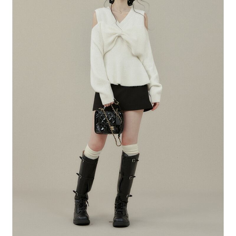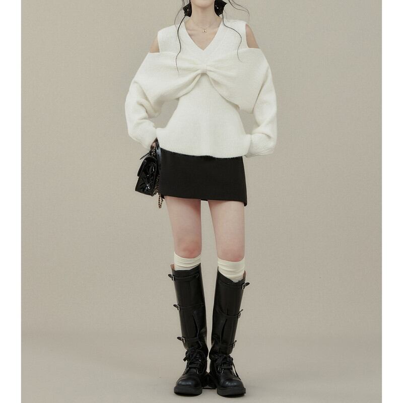 フロントに施された大胆なビッグリボンが、圧倒的な存在感と愛らしさを放つ主役級のニットです。 肩の部分を程よく露出させたオープンショルダーのデザインが、ヘルシーで洗練された抜け感を演出。 デコルテを美しく見せるVネックラインとタイトなリブ編みが、女性らしく華奢なシルエットを描き出します。 コンパクトな着丈でミニボトムスともバランスが取りやすく、特別な日のお出かけを華やかに彩る一着です。 ◼️サイズ 【S】 肩幅:32cm 胸囲:80cm 着丈:55cm 袖丈:53cm 【M】 肩幅:33cm 胸囲:84cm 着丈:56cm 袖丈:54cm 【L】 肩幅:34cm 胸囲:88cm 着丈:57cm 袖丈:55cm 【XL】 肩幅:35cm 胸囲:92cm 着丈:58cm 袖丈:56cm ◼️カラー オフホワイト ◼️素材 ポリエステル31% アクリル42.1% ナイロン26.9% 【お届けについて】 こちらの商品は海外店舗より直接発送となる為、ご入金から1〜3週間でお届けいたします。 ◼️注意事項 ・タイミングによっては 商品在庫切れにより注文キャンセルとさせていただく恐れもございますので、予めご了承くださいませ。 ・日本製とは検品基準が異なる為、縫製などが若干甘い場合があります。 ・海外倉庫にて保管をしております。在庫情報に時差が生じますため在庫切れや生産中止、生産に遅れがある場合は、受注後でもキャンセルさせていただく恐れがございます。 ・商品の色味は、お手持ちのスマートフォンの画面によって実物と若干異なる場合がございます。 ・発送時期によりデザイン仕様(細部、素材など)の変更がある場合がございます。 ・イメージ違いやサイズ交換等、お客さまご都合による交換、返品は対応出来かねます。 ———————————— 誠に恐れ入りますが、ご購入前に以下をご確認頂きご承諾の上お買い求めくださいませ。 →https://petitelune.official.ec/about ————————————