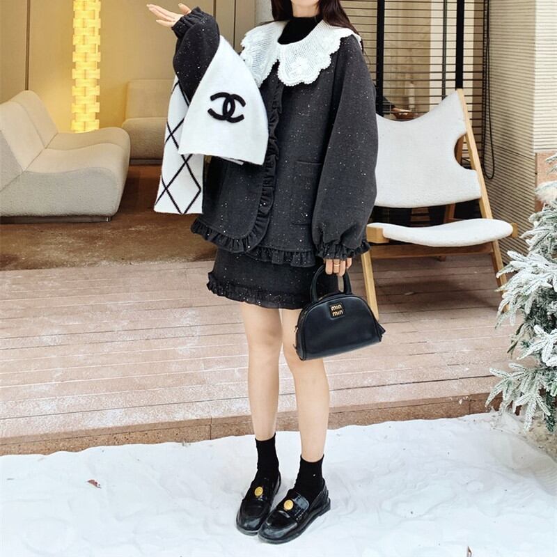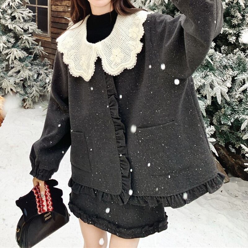 スカラップレース襟ジャケット&ミニスカートフリルセットアップ 00339