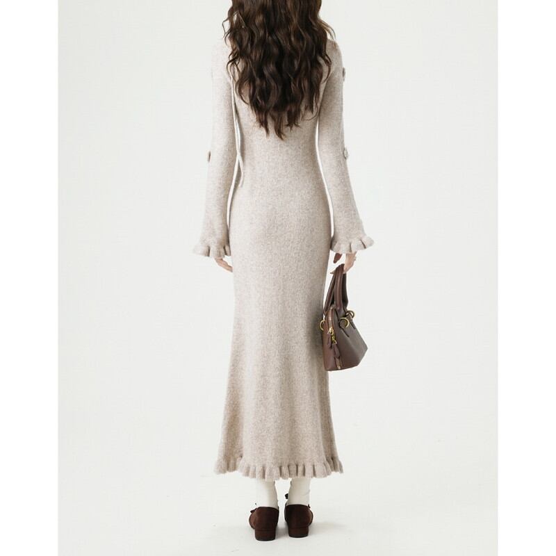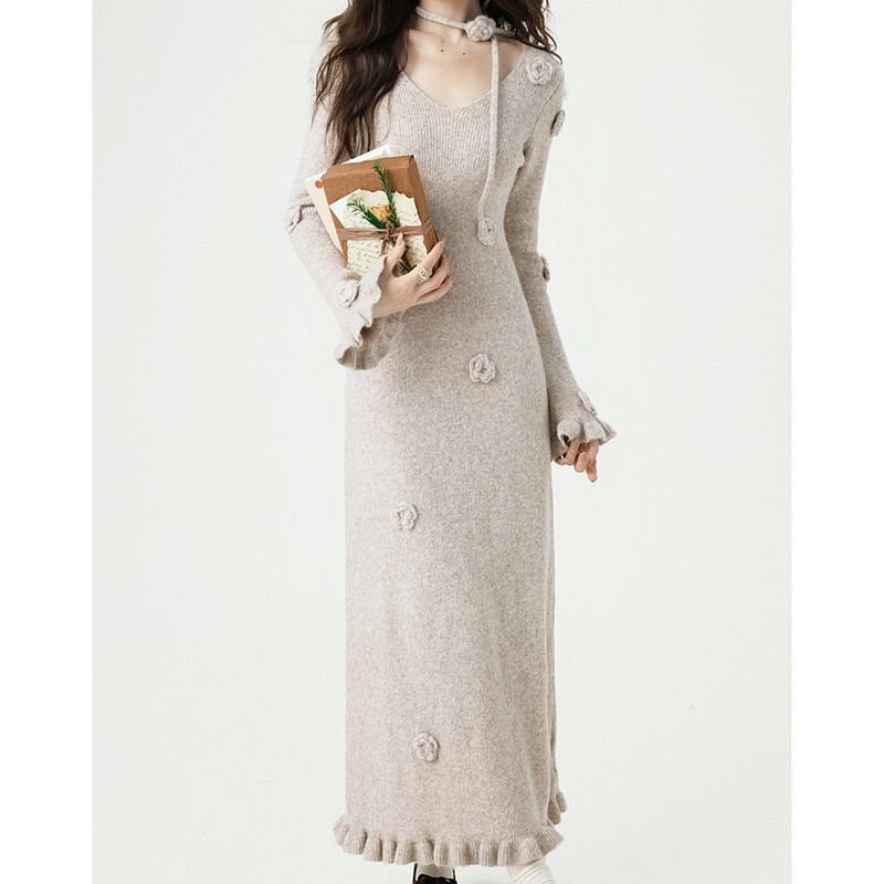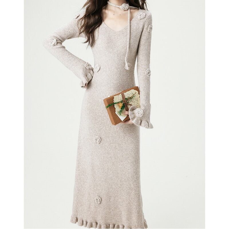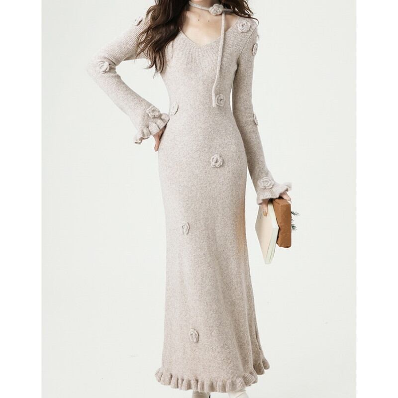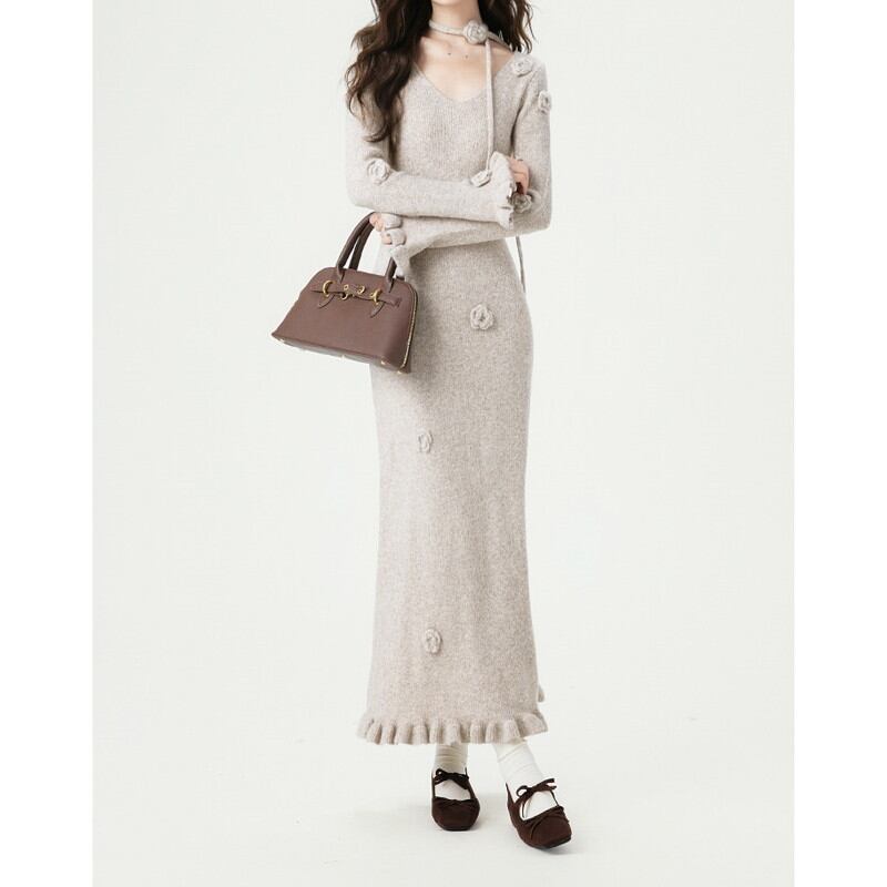 全体に散りばめられた立体的なフラワーモチーフが、奥行きのある可憐な表情を演出するニットワンピースです。 デコルテを美しく見せる緩やかなVネックラインと、同素材のチョーカーが首元を華やかに彩ります。 裾に向かって緩やかに広がるフレアデザインが、歩くたびにしなやかで優雅な揺れ感をプラス。 袖口のフリルディテールが手元までレディに仕上げ、一枚で洗練されたフェミニンな装いを叶えてくれるアイテムです。 ◼️サイズ 【S】 肩幅:31cm 胸囲:68cm 着丈:118cm 袖丈:60cm ウエスト:58cm 【M】 肩幅:32cm 胸囲:72cm 着丈:119cm 袖丈:61cm ウエスト:62cm 【L】 肩幅:33cm 胸囲:76cm 着丈:120cm 袖丈:62cm ウエスト:66cm 【XL】 肩幅:34cm 胸囲:80cm 着丈:121cm 袖丈:63cm ウエスト:70cm ◼️カラー ベージュ 【お届けについて】 こちらの商品は海外店舗より直接発送となる為、ご入金から1〜3週間でお届けいたします。 ◼️注意事項 ・タイミングによっては 商品在庫切れにより注文キャンセルとさせていただく恐れもございますので、予めご了承くださいませ。 ・日本製とは検品基準が異なる為、縫製などが若干甘い場合があります。 ・海外倉庫にて保管をしております。在庫情報に時差が生じますため在庫切れや生産中止、生産に遅れがある場合は、受注後でもキャンセルさせていただく恐れがございます。 ・商品の色味は、お手持ちのスマートフォンの画面によって実物と若干異なる場合がございます。 ・発送時期によりデザイン仕様(細部、素材など)の変更がある場合がございます。 ・イメージ違いやサイズ交換等、お客さまご都合による交換、返品は対応出来かねます。 ———————————— 誠に恐れ入りますが、ご購入前に以下をご確認頂きご承諾の上お買い求めくださいませ。 →https://petitelune.official.ec/about ————————————