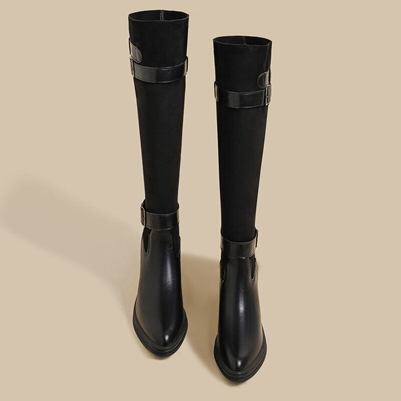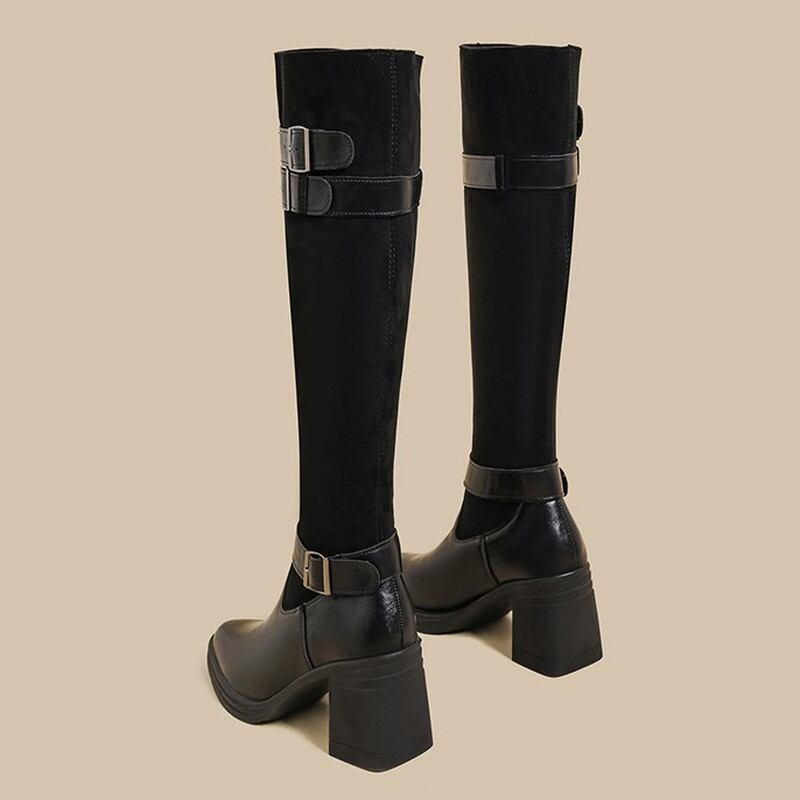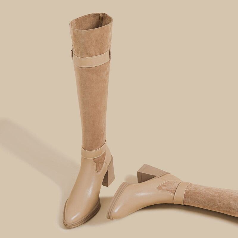 膝下までを美しく包み込むスマートなシルエットに、異素材のコンビネーションが映えるロングブーツです。 バックルベルトのデザインが、洗練された大人のマニッシュなアクセントを添えてくれます。 質感の異なる素材を組み合わせることで、脚のラインをすっきりと見せつつ奥行きのある表情を演出。 安定感のあるヒール設計で歩きやすく、冬のミニボトムスやタイトなパンツスタイルを格上げしてくれる一着です。 ◼️サイズ 34((21.5~22.0cm) 35(22.0~22.5cm) 36(23.0~23.5cm) 37(23.5~24.0cm) 38(24.0~24.5cm) 39(24.5~25.0cm) ヒール高さ7cm 筒丈37cm ※足の形にもよりますが、甲の幅の広い方は通常よりもワンサイズ上げてご購入頂くことをお勧めします。 ※採寸方法により若干の誤差がある場合がございます ◼️カラー ベージュ ブラック 【お届けについて】 こちらの商品は海外店舗より直接発送となる為、ご入金から1〜3週間でお届けいたします。 ◼️注意事項 ・タイミングによっては 商品在庫切れにより注文キャンセルとさせていただく恐れもございますので、予めご了承くださいませ。 ・日本製とは検品基準が異なる為、縫製などが若干甘い場合があります。 ・海外倉庫にて保管をしております。在庫情報に時差が生じますため在庫切れや生産中止、生産に遅れがある場合は、受注後でもキャンセルさせていただく恐れがございます。 ・商品の色味は、お手持ちのスマートフォンの画面によって実物と若干異なる場合がございます。 ・発送時期によりデザイン仕様(細部、素材など)の変更がある場合がございます。 ・イメージ違いやサイズ交換等、お客さまご都合による交換、返品は対応出来かねます。 ———————————— 誠に恐れ入りますが、ご購入前に以下をご確認頂きご承諾の上お買い求めくださいませ。 →https://petitelune.official.ec/about ————————————