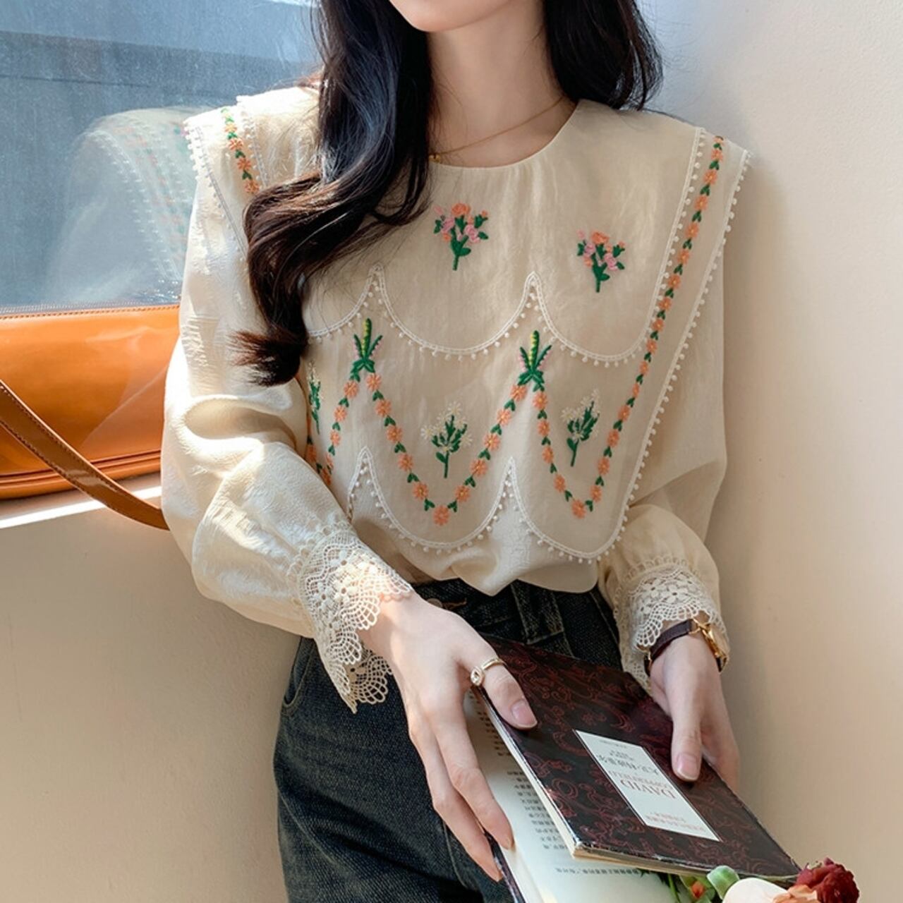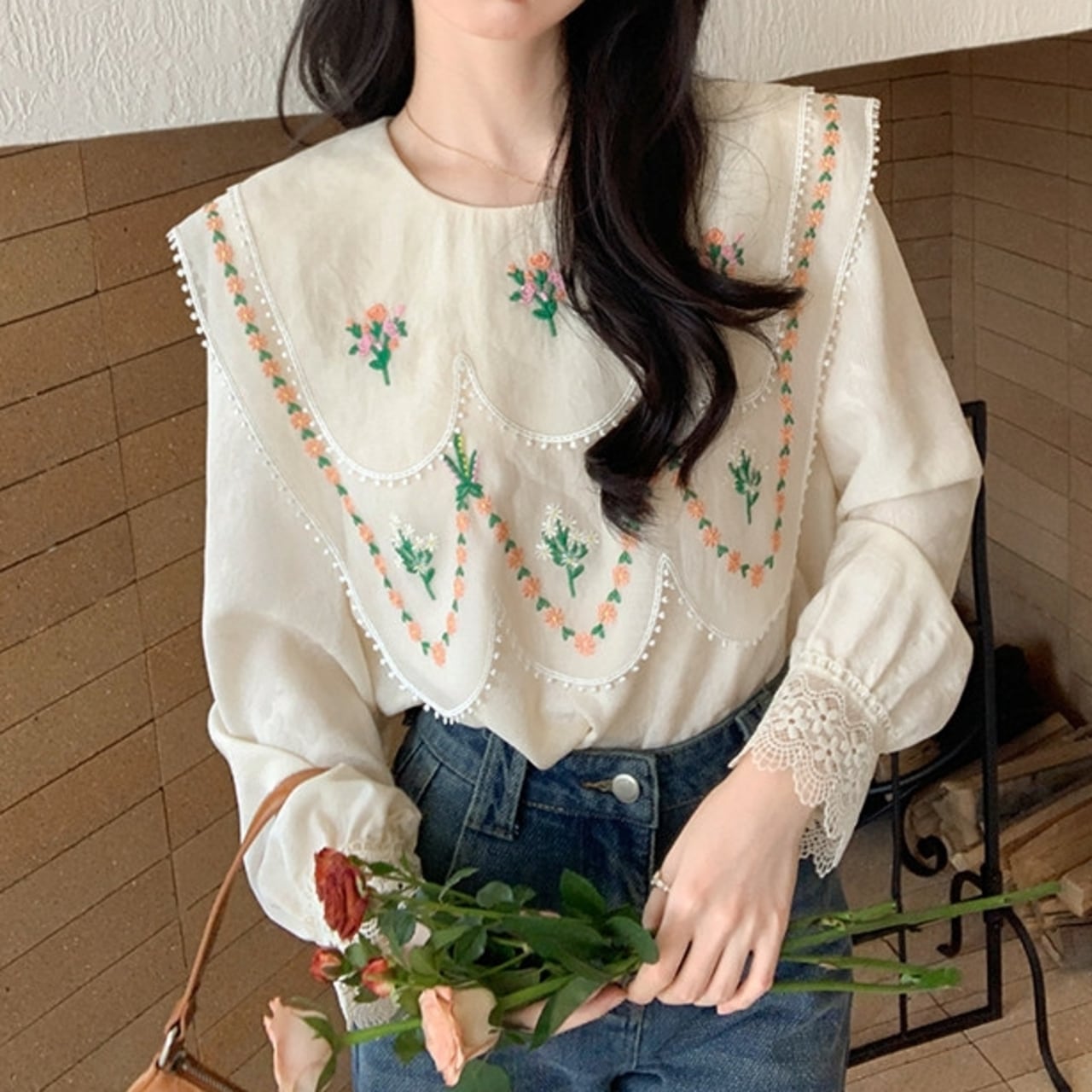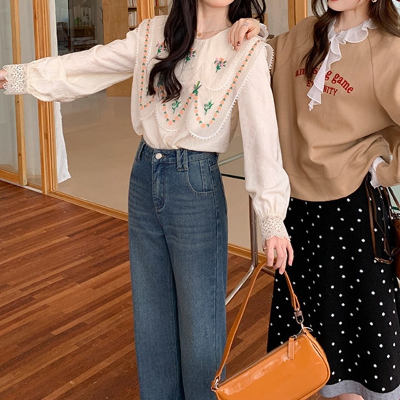 存在感抜群な二重のスカラップ襟に刺繍を施し、可憐な印象の一枚です。 普段使いはもちろん、ちょっとしたお出かけにもおすすめの華やかなデザインです。 袖口の繊細なレースがさりげないアクセントになり、上品さをプラス。 ◼️サイズ 【XS】 肩幅:33cm 胸囲:34.8cm 着丈:58.5cm 袖丈:60cm 袖口:24cm 【S】 肩幅:34cm 胸囲:36cm 着丈:60cm 袖丈:61cm 袖口:25cm 【M】 肩幅:35cm 胸囲:37.2cm 着丈:61.5cm 袖丈:62cm 袖口:26cm 【L】 肩幅:36cm 胸囲:38.4cm 着丈:63cm 袖丈:63cm 袖口:27cm ※採寸方法により1~3cmの誤差がある場合がございます ◼️カラー オフホワイト ◼️素材 ポリエステル95%、ポリウレタン5% 【お届けについて】 こちらの商品は海外店舗より直接発送となる為、ご入金から1〜3週間でお届けいたします。 ◼️注意事項 ・タイミングによっては 商品在庫切れにより注文キャンセルとさせていただく恐れもございますので、予めご了承くださいませ。 ・日本製とは検品基準が異なる為、縫製などが若干甘い場合があります。 ・海外倉庫にて保管をしております。在庫情報に時差が生じますため在庫切れや生産中止、生産に遅れがある場合は、受注後でもキャンセルさせていただく恐れがございます。 ・商品の色味は、お手持ちのスマートフォンの画面によって実物と若干異なる場合がございます。 ・発送時期によりデザイン仕様(細部、素材など)の変更がある場合がございます。 ・イメージ違いやサイズ交換等、お客さまご都合による交換、返品は対応出来かねます。 ———————————— 誠に恐れ入りますが、ご購入前に以下をご確認頂きご承諾の上お買い求めくださいませ。 →https://petitelune.official.ec/about ————————————