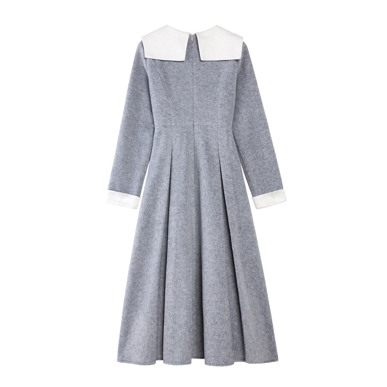 リボン襟 ボックスプリーツ Aラインワンピース 00418
