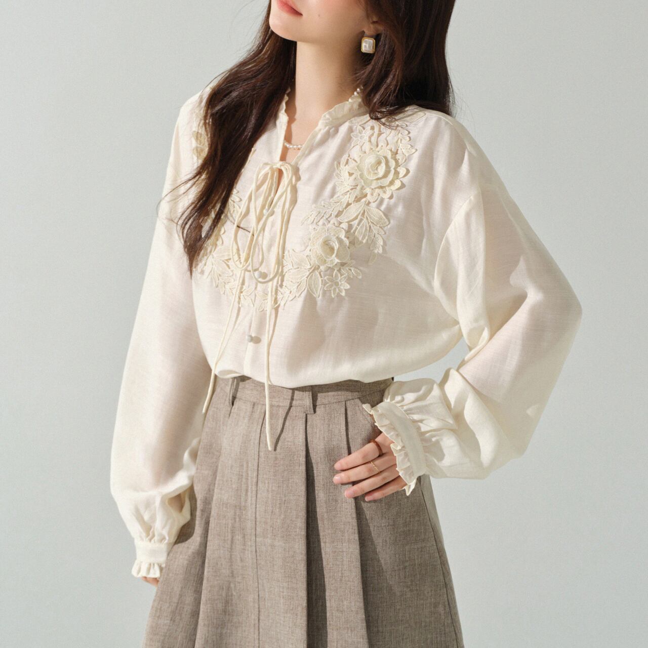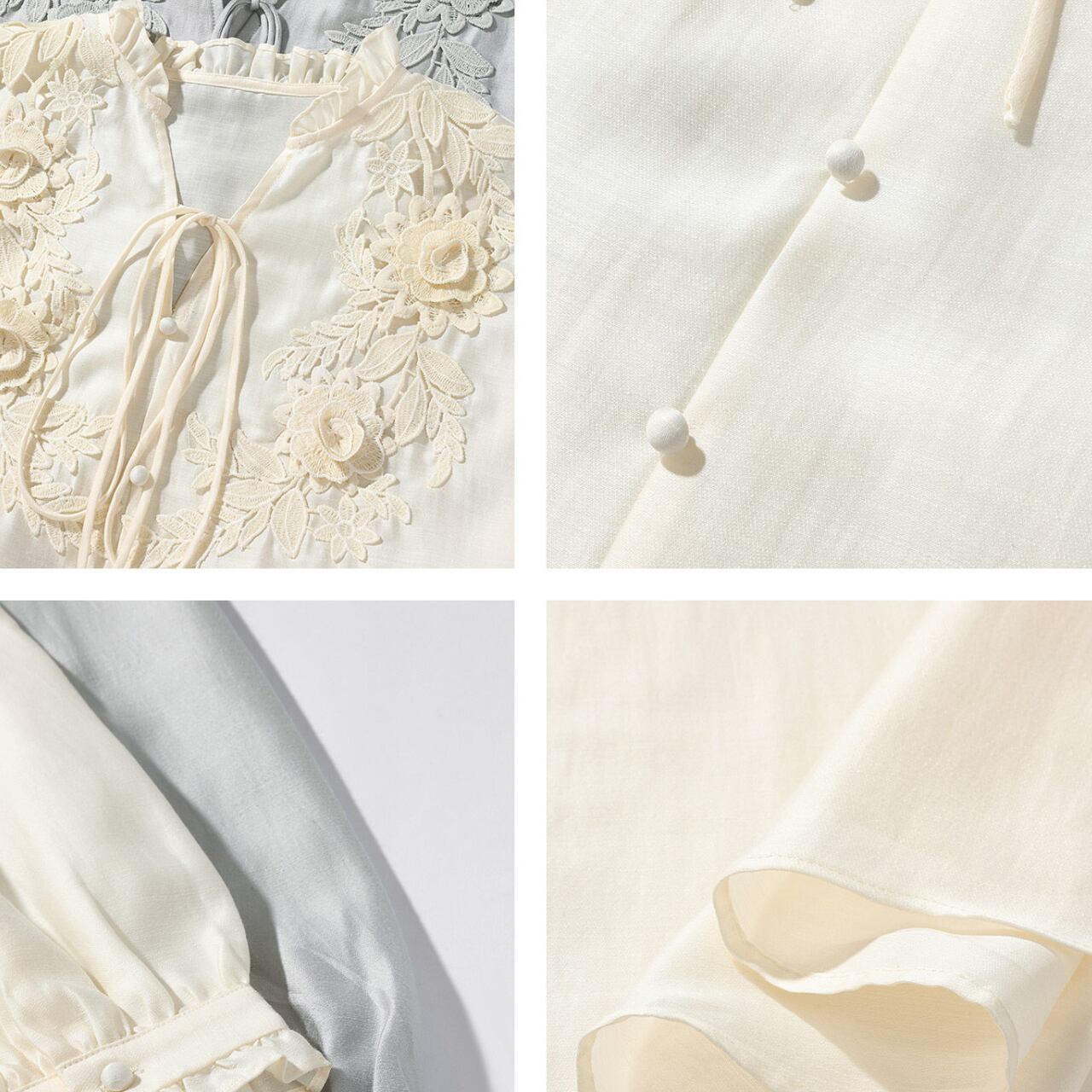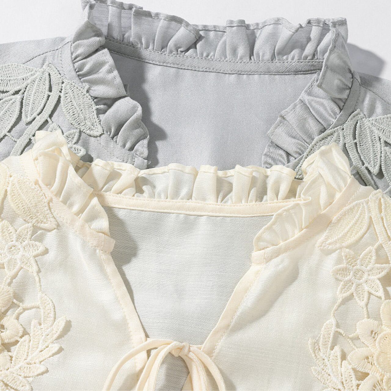 胸元の刺繍が、さりげなく上品な印象をプラス。 普段使いはもちろん、ちょっとしたお出かけにもおすすめです。 紐付きなので、気分に合わせてシルエットを調整できます。 ◼️サイズ 【XS】 肩幅(裄丈):55cm 着丈:64cm 袖丈:51cm 【S】 肩幅(裄丈):56cm 着丈:66cm 袖丈:53cm 【M】 肩幅(裄丈):57cm 着丈:67cm 袖丈:54cm 【L】 肩幅(裄丈):58cm 着丈:68cm 袖丈:55cm ◼️カラー ブルー ピンク ◼️素材 リヨセル繊維 ポリエステル 【お届けについて】 こちらの商品は海外店舗より直接発送となる為、ご入金から1〜3週間でお届けいたします。 ◼️注意事項 ・タイミングによっては 商品在庫切れにより注文キャンセルとさせていただく恐れもございますので、予めご了承くださいませ。 ・日本製とは検品基準が異なる為、縫製などが若干甘い場合があります。 ・海外倉庫にて保管をしております。在庫情報に時差が生じますため在庫切れや生産中止、生産に遅れがある場合は、受注後でもキャンセルさせていただく恐れがございます。 ・商品の色味は、お手持ちのスマートフォンの画面によって実物と若干異なる場合がございます。 ・発送時期によりデザイン仕様(細部、素材など)の変更がある場合がございます。 ・イメージ違いやサイズ交換等、お客さまご都合による交換、返品は対応出来かねます。 ———————————— 誠に恐れ入りますが、ご購入前に以下をご確認頂きご承諾の上お買い求めくださいませ。 →https://petitelune.official.ec/about ————————————