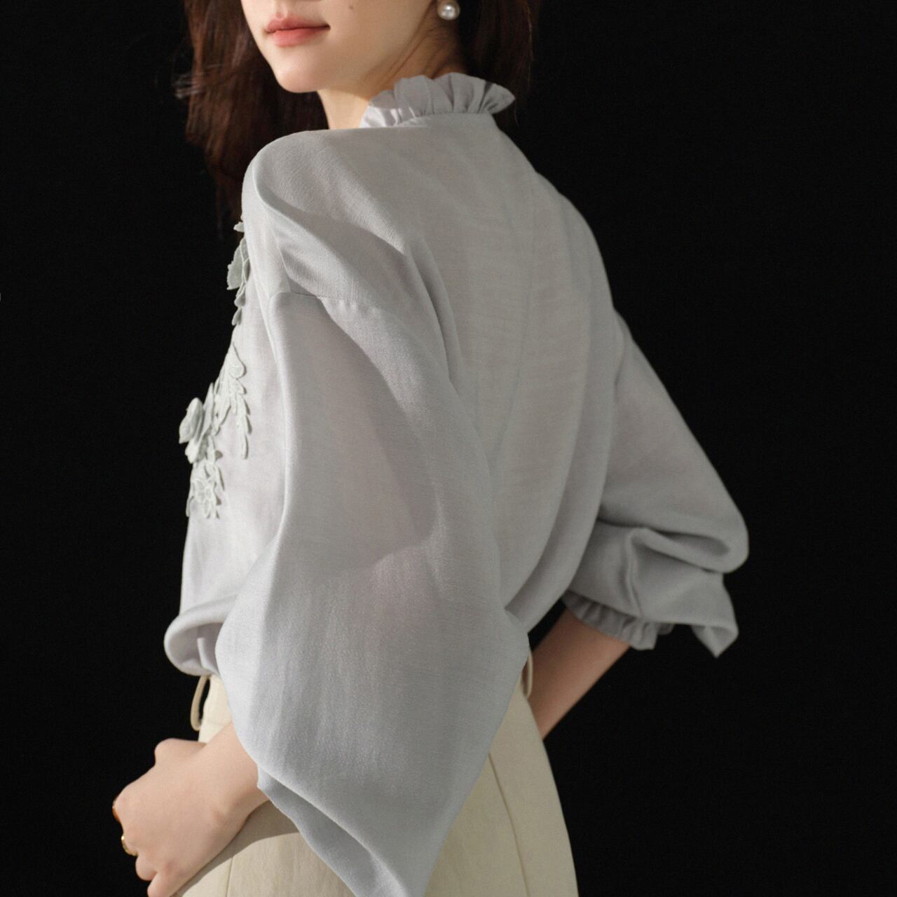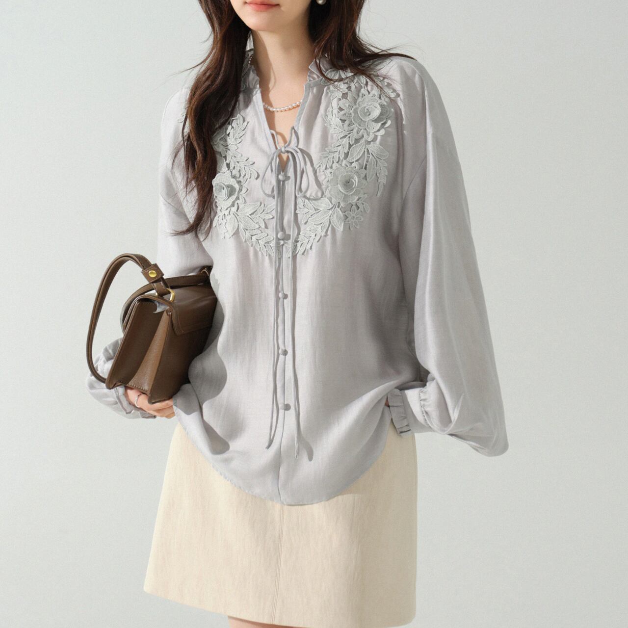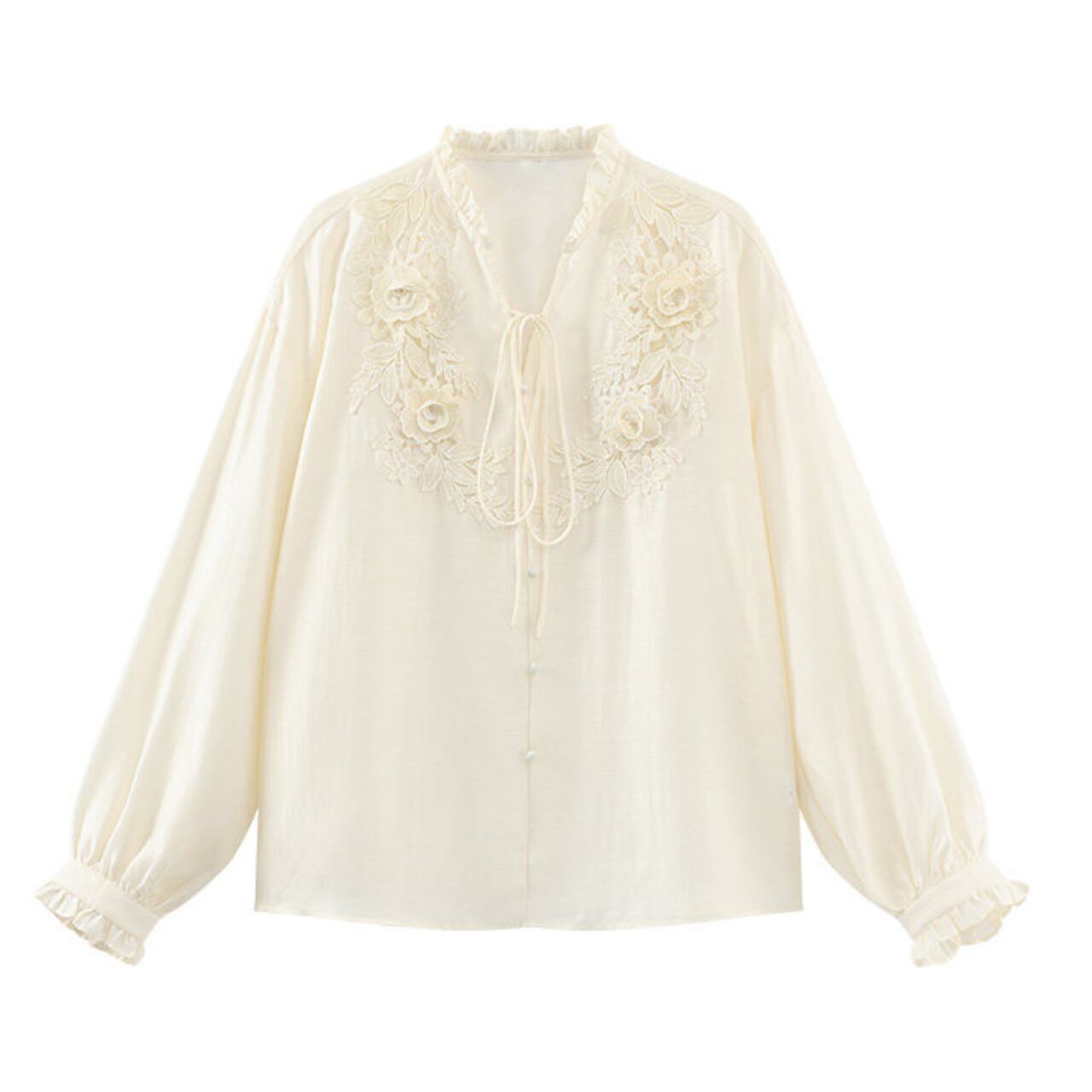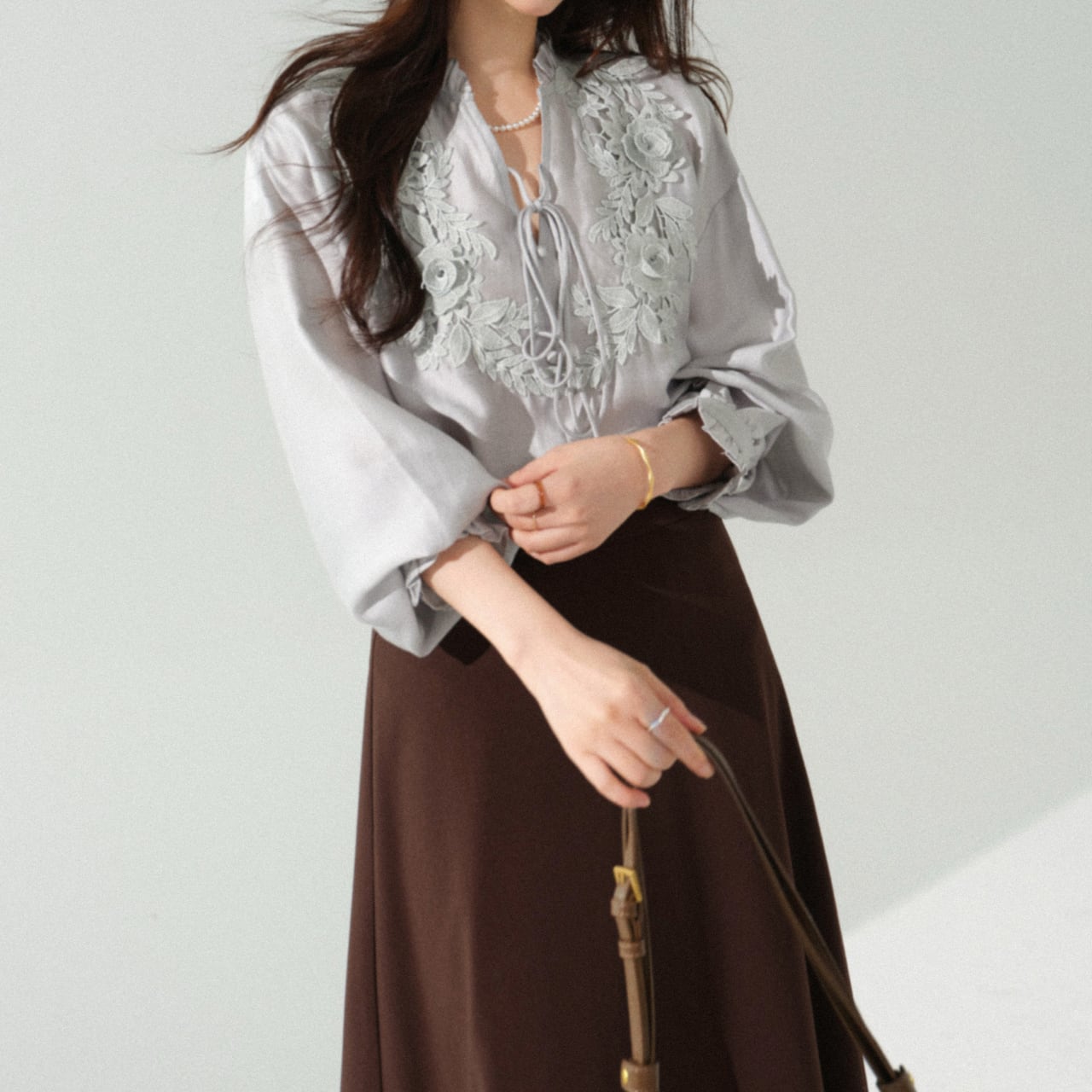 胸元の刺繍が、さりげなく上品な印象をプラス。 普段使いはもちろん、ちょっとしたお出かけにもおすすめです。 紐付きなので、気分に合わせてシルエットを調整できます。 ◼️サイズ 【XS】 肩幅(裄丈):55cm 着丈:64cm 袖丈:51cm 【S】 肩幅(裄丈):56cm 着丈:66cm 袖丈:53cm 【M】 肩幅(裄丈):57cm 着丈:67cm 袖丈:54cm 【L】 肩幅(裄丈):58cm 着丈:68cm 袖丈:55cm ◼️カラー ブルー ピンク ◼️素材 リヨセル繊維 ポリエステル 【お届けについて】 こちらの商品は海外店舗より直接発送となる為、ご入金から1〜3週間でお届けいたします。 ◼️注意事項 ・タイミングによっては 商品在庫切れにより注文キャンセルとさせていただく恐れもございますので、予めご了承くださいませ。 ・日本製とは検品基準が異なる為、縫製などが若干甘い場合があります。 ・海外倉庫にて保管をしております。在庫情報に時差が生じますため在庫切れや生産中止、生産に遅れがある場合は、受注後でもキャンセルさせていただく恐れがございます。 ・商品の色味は、お手持ちのスマートフォンの画面によって実物と若干異なる場合がございます。 ・発送時期によりデザイン仕様(細部、素材など)の変更がある場合がございます。 ・イメージ違いやサイズ交換等、お客さまご都合による交換、返品は対応出来かねます。 ———————————— 誠に恐れ入りますが、ご購入前に以下をご確認頂きご承諾の上お買い求めくださいませ。 →https://petitelune.official.ec/about ————————————