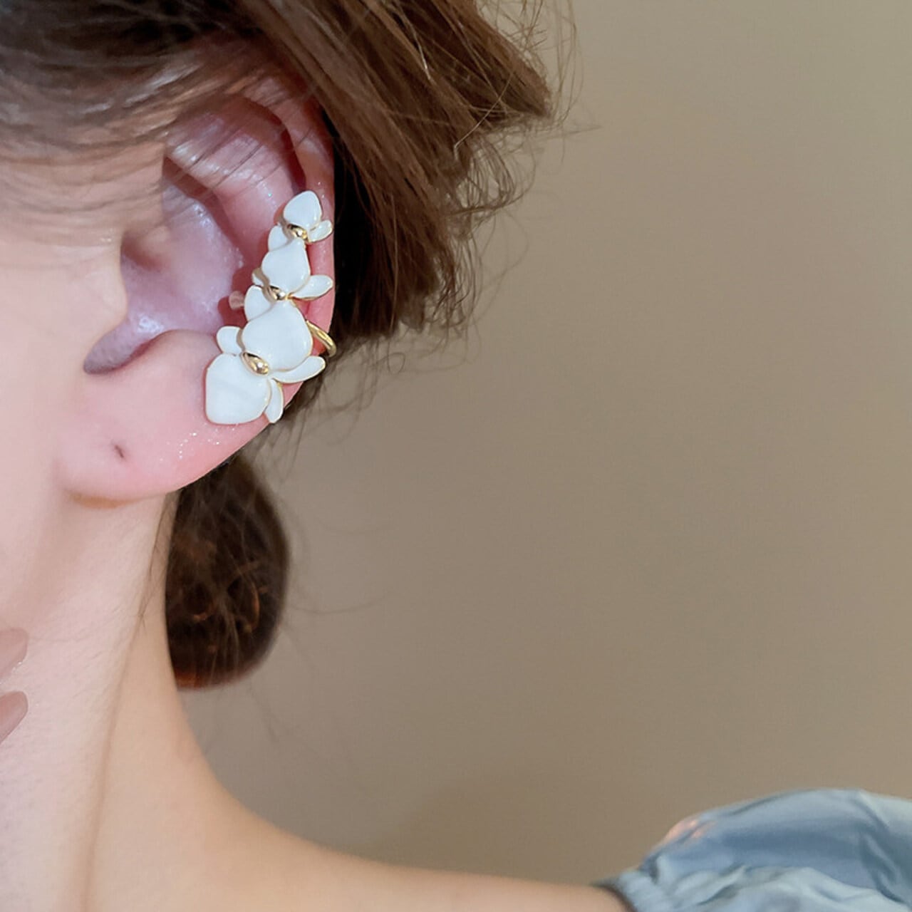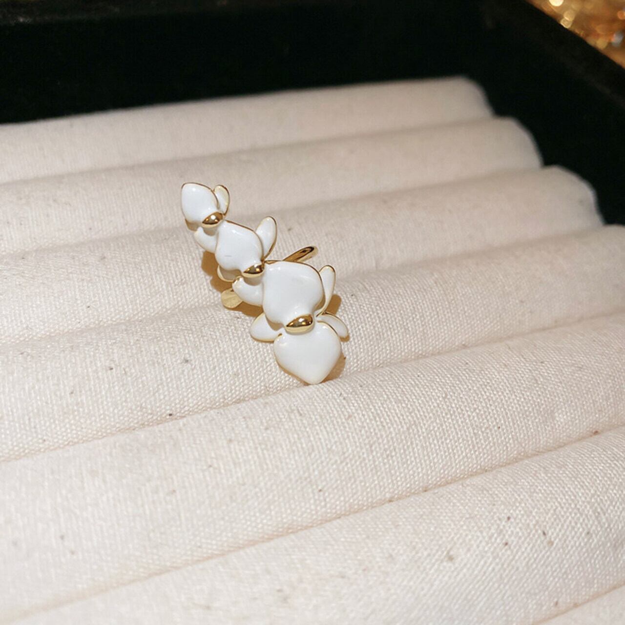 耳元に咲く、可憐なフラワーモチーフが存在感のあるイヤーカフ。