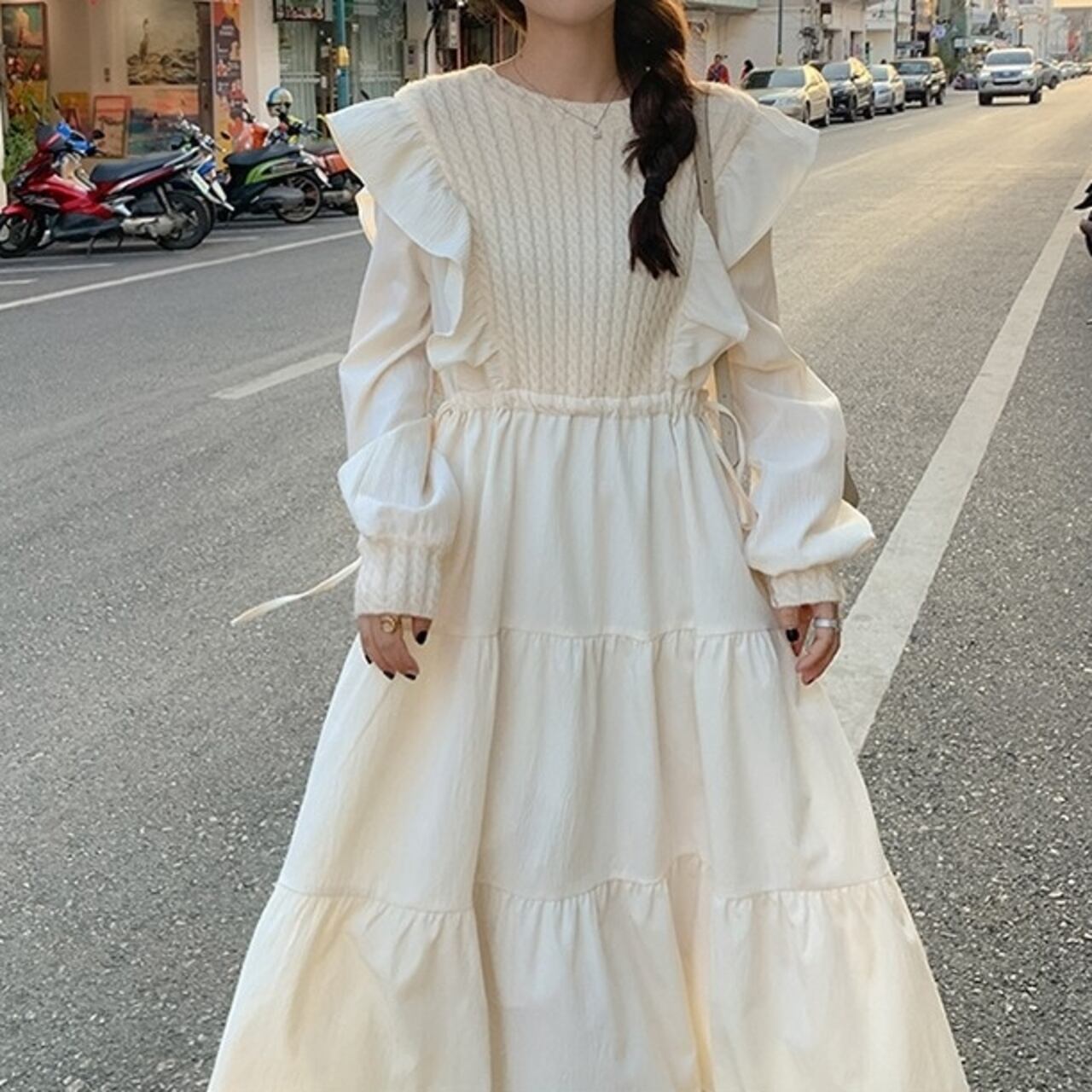 リブニット切り替えデザインが目を引く、ミモレ丈のティアードワンピース。 普段使いはもちろん、ちょっとしたお出かけにも活躍する一枚です。 上品な印象を与えつつ、リラックス感のある着心地なので、休日コーデにもぴったり。 ◼️サイズ 【S】 肩幅:37cm 胸囲:88cm ウエスト:86cm 袖丈:63.5cm 【M】 肩幅:38cm 胸囲:92cm ウエスト:90cm 袖丈:64.5cm 【L】 肩幅:39cm 胸囲:96cm ウエスト:94cm 袖丈:65.5cm 【XL】 肩幅:40cm 胸囲:100cm ウエスト:98cm 袖丈:66.5cm ※採寸方法により1~3cmの誤差がある場合がございます ◼️カラー ライトベージュ ◼️素材 ポリエステル100% 【お届けについて】 こちらの商品は海外店舗より直接発送となる為、ご入金から1〜3週間でお届けいたします。 ◼️注意事項 ・タイミングによっては 商品在庫切れにより注文キャンセルとさせていただく恐れもございますので、予めご了承くださいませ。 ・日本製とは検品基準が異なる為、縫製などが若干甘い場合があります。 ・海外倉庫にて保管をしております。在庫情報に時差が生じますため在庫切れや生産中止、生産に遅れがある場合は、受注後でもキャンセルさせていただく恐れがございます。 ・商品の色味は、お手持ちのスマートフォンの画面によって実物と若干異なる場合がございます。 ・発送時期によりデザイン仕様(細部、素材など)の変更がある場合がございます。 ・イメージ違いやサイズ交換等、お客さまご都合による交換、返品は対応出来かねます。 ———————————— 誠に恐れ入りますが、ご購入前に以下をご確認頂きご承諾の上お買い求めくださいませ。 →https://petitelune.official.ec/about ————————————