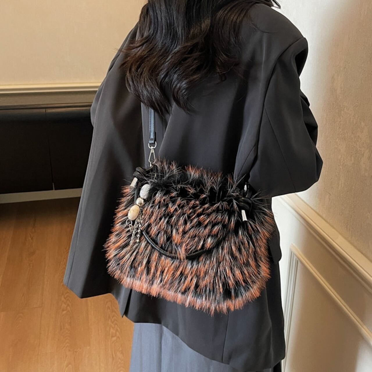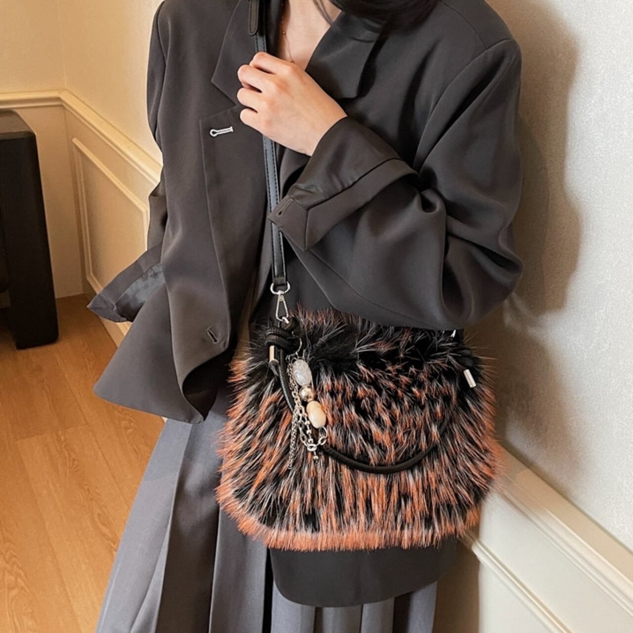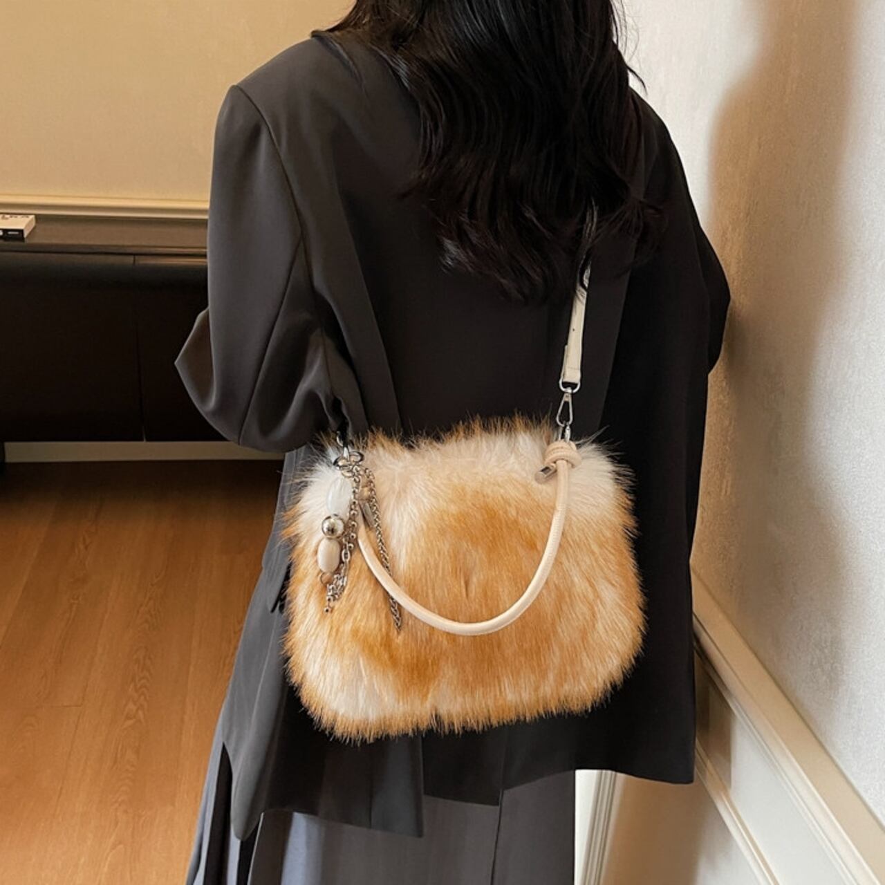 コーディネートにプラスするだけで、シーズンムードが高まるフェイクファーバッグ。 普段使いはもちろん、パーティーシーンにもおすすめの華やかなアイテムです。 アクセサリー感覚で持てる、存在感のあるバッグです。 ◼️サイズ 縦:16cm 横:22cm マチ:8cm ◼️カラー ベージュ ブラウン ホワイト ブラック ◼️素材 PU 【お届けについて】 こちらの商品は海外店舗より直接発送となる為、ご入金から1〜3週間でお届けいたします。 ◼️注意事項 ・タイミングによっては 商品在庫切れにより注文キャンセルとさせていただく恐れもございますので、予めご了承くださいませ。 ・日本製とは検品基準が異なる為、縫製などが若干甘い場合があります。 ・海外倉庫にて保管をしております。在庫情報に時差が生じますため在庫切れや生産中止、生産に遅れがある場合は、受注後でもキャンセルさせていただく恐れがございます。 ・商品の色味は、お手持ちのスマートフォンの画面によって実物と若干異なる場合がございます。 ・発送時期によりデザイン仕様(細部、素材など)の変更がある場合がございます。 ・イメージ違いやサイズ交換等、お客さまご都合による交換、返品は対応出来かねます。 ———————————— 誠に恐れ入りますが、ご購入前に以下をご確認頂きご承諾の上お買い求めくださいませ。 →https://petitelune.official.ec/about ————————————