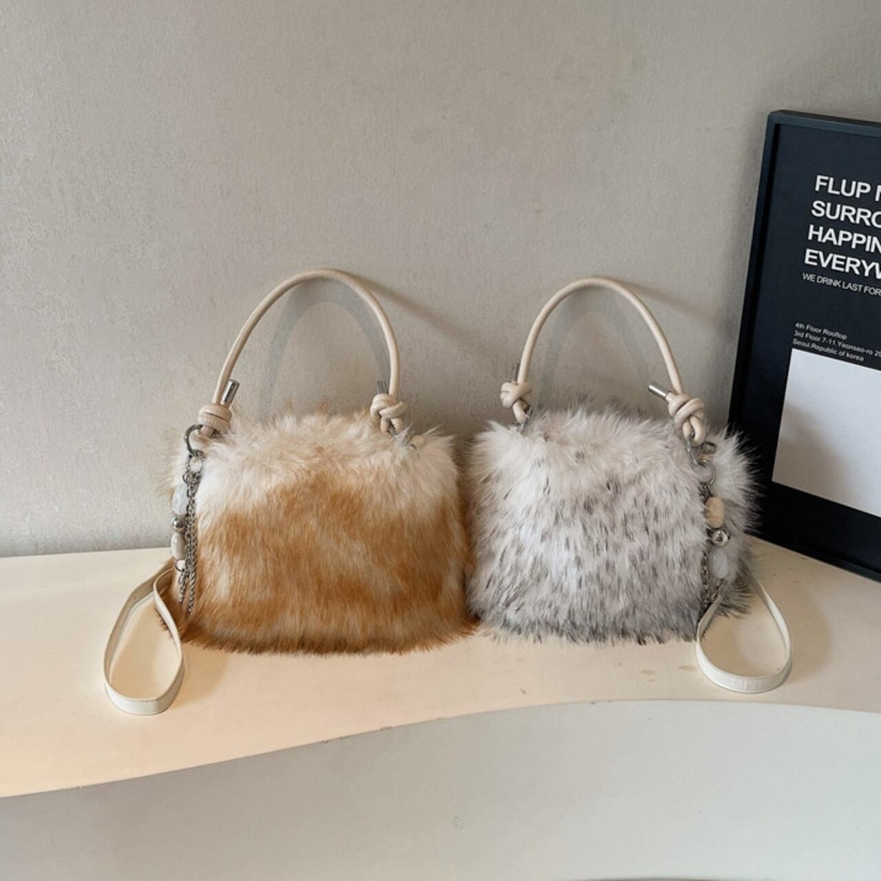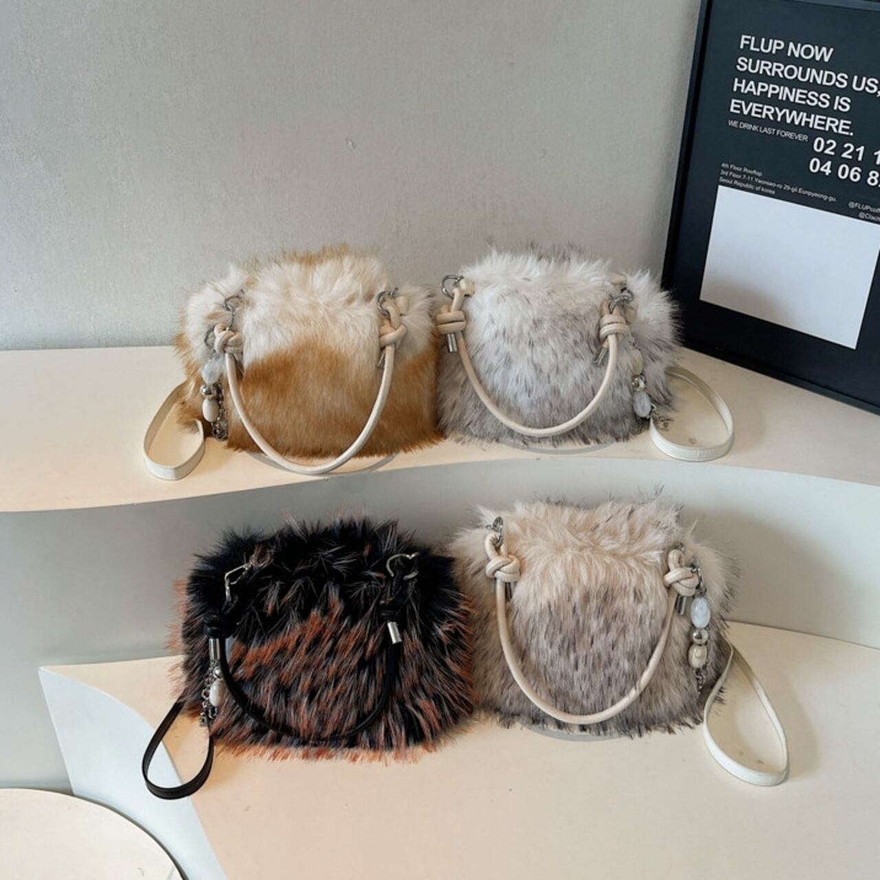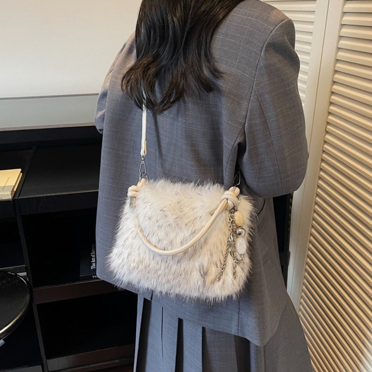 コーディネートにプラスするだけで、シーズンムードが高まるフェイクファーバッグ。 普段使いはもちろん、パーティーシーンにもおすすめの華やかなアイテムです。 アクセサリー感覚で持てる、存在感のあるバッグです。 ◼️サイズ 縦:16cm 横:22cm マチ:8cm ◼️カラー ベージュ ブラウン ホワイト ブラック ◼️素材 PU 【お届けについて】 こちらの商品は海外店舗より直接発送となる為、ご入金から1〜3週間でお届けいたします。 ◼️注意事項 ・タイミングによっては 商品在庫切れにより注文キャンセルとさせていただく恐れもございますので、予めご了承くださいませ。 ・日本製とは検品基準が異なる為、縫製などが若干甘い場合があります。 ・海外倉庫にて保管をしております。在庫情報に時差が生じますため在庫切れや生産中止、生産に遅れがある場合は、受注後でもキャンセルさせていただく恐れがございます。 ・商品の色味は、お手持ちのスマートフォンの画面によって実物と若干異なる場合がございます。 ・発送時期によりデザイン仕様(細部、素材など)の変更がある場合がございます。 ・イメージ違いやサイズ交換等、お客さまご都合による交換、返品は対応出来かねます。 ———————————— 誠に恐れ入りますが、ご購入前に以下をご確認頂きご承諾の上お買い求めくださいませ。 →https://petitelune.official.ec/about ————————————