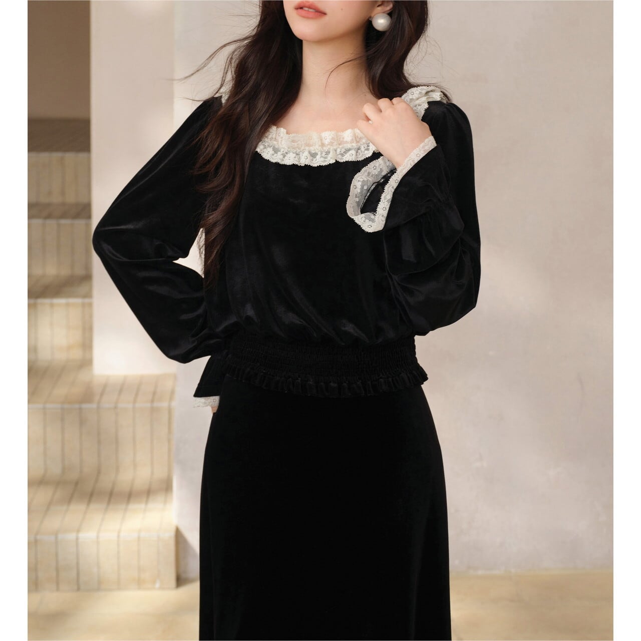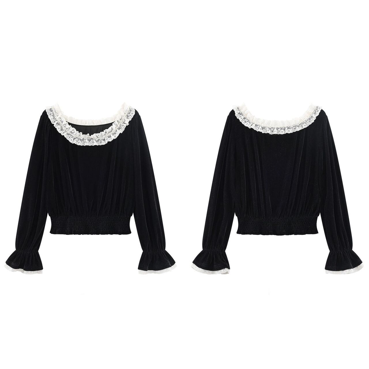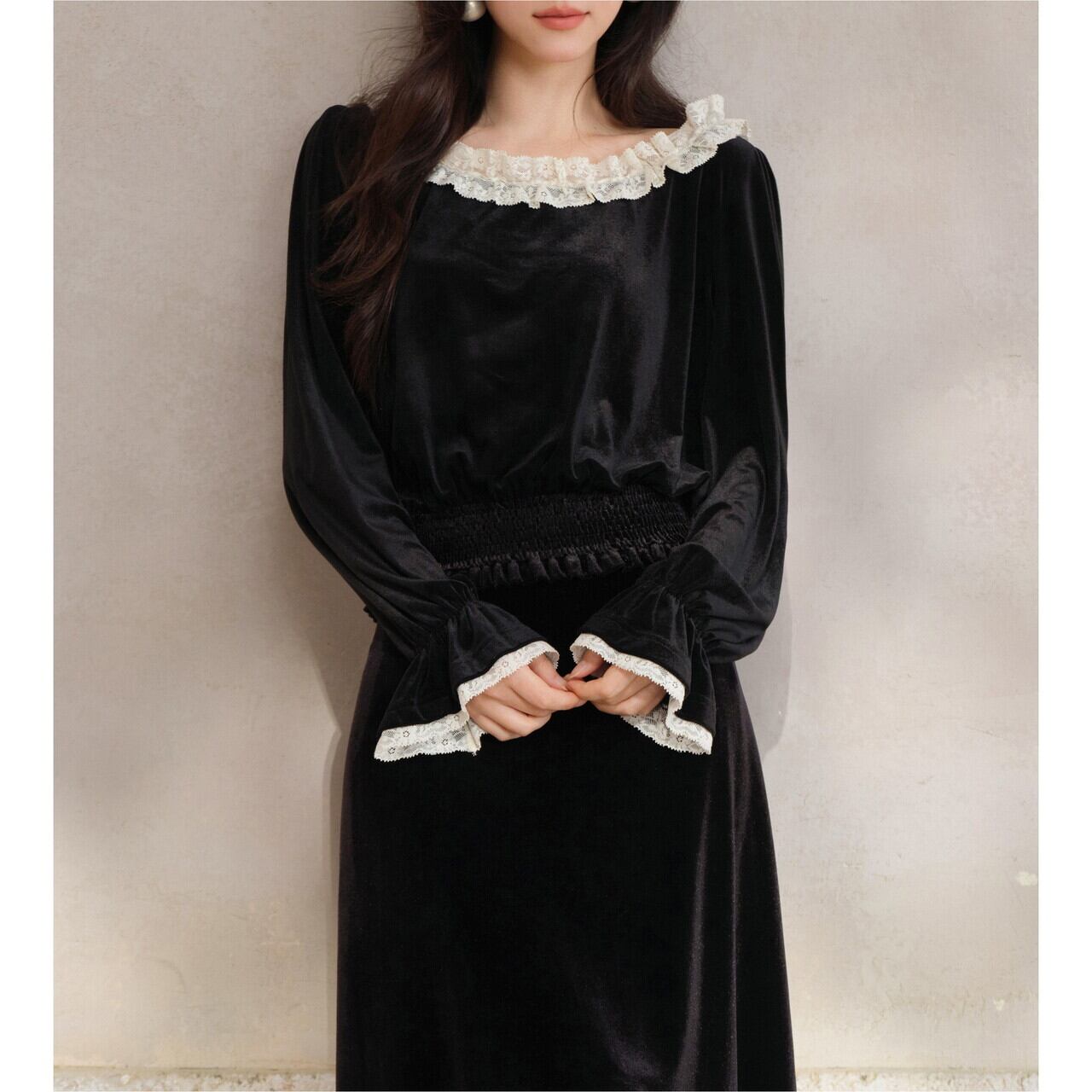 ワイドなラウンドネックがデコルテを美しく見せ、上品な印象に仕上げたベルベットブラウス。 袖口のレースがさりげないアクセントになり、普段使いから、ちょっとしたお出かけにも活躍します。 取り入れるでけでコーデがシックで大人かわいい雰囲気をまといます。 ◼️サイズ 【S】 肩幅:39cm 身幅:104cm 着丈(前):49cm 袖丈:61cm 【M】 肩幅:40cm 身幅:108cm 着丈(前):50cm 袖丈:62cm 【L】 肩幅:41cm 身幅:112cm 着丈(前):51cm 袖丈:63cm ※採寸方法により1~3cmの誤差がある場合がございます ◼️カラー ブラック ◼️素材 ポリエステル92%、ポリウレタン8% 【お届けについて】 こちらの商品は海外店舗より直接発送となる為、ご入金から1〜3週間でお届けいたします。 ◼️注意事項 ・タイミングによっては 商品在庫切れにより注文キャンセルとさせていただく恐れもございますので、予めご了承くださいませ。 ・日本製とは検品基準が異なる為、縫製などが若干甘い場合があります。 ・海外倉庫にて保管をしております。在庫情報に時差が生じますため在庫切れや生産中止、生産に遅れがある場合は、受注後でもキャンセルさせていただく恐れがございます。 ・商品の色味は、お手持ちのスマートフォンの画面によって実物と若干異なる場合がございます。 ・発送時期によりデザイン仕様(細部、素材など)の変更がある場合がございます。 ・イメージ違いやサイズ交換等、お客さまご都合による交換、返品は対応出来かねます。 ———————————— 誠に恐れ入りますが、ご購入前に以下をご確認頂きご承諾の上お買い求めくださいませ。 →https://petitelune.official.ec/about ————————————