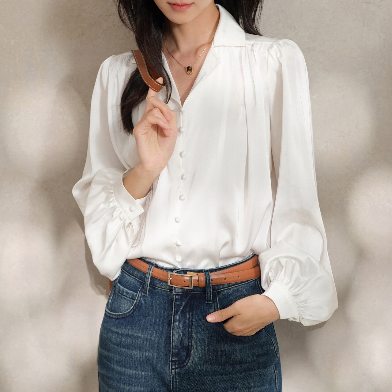 オフィスにもカジュアルにも着用可能なシックで大人かわいいブラウス。 きちんと感と抜け感を両立する開襟とくるみボタンで洗練された印象をブラウス。 シンプルなデザインで、どんなボトムスにも合わせやすく、着回し力抜群です。 ◼️サイズ 【XS】 肩幅:33cm 着丈:58.5cm 袖丈:62cm 【S】 肩幅:34cm 着丈:61cm 袖丈:64cm 【M】 肩幅:35cm 着丈:62.5cm 袖丈:65cm 【L】 肩幅:36cm 着丈:64cm 袖丈:66cm ◼️カラー ホワイト ◼️素材 ポリエステル97%、ポリウレタン3% 【お届けについて】 こちらの商品は海外店舗より直接発送となる為、ご入金から1〜3週間でお届けいたします。 ◼️注意事項 ・タイミングによっては 商品在庫切れにより注文キャンセルとさせていただく恐れもございますので、予めご了承くださいませ。 ・日本製とは検品基準が異なる為、縫製などが若干甘い場合があります。 ・海外倉庫にて保管をしております。在庫情報に時差が生じますため在庫切れや生産中止、生産に遅れがある場合は、受注後でもキャンセルさせていただく恐れがございます。 ・商品の色味は、お手持ちのスマートフォンの画面によって実物と若干異なる場合がございます。 ・発送時期によりデザイン仕様(細部、素材など)の変更がある場合がございます。 ・イメージ違いやサイズ交換等、お客さまご都合による交換、返品は対応出来かねます。 ———————————— 誠に恐れ入りますが、ご購入前に以下をご確認頂きご承諾の上お買い求めくださいませ。 →https://petitelune.official.ec/about ————————————