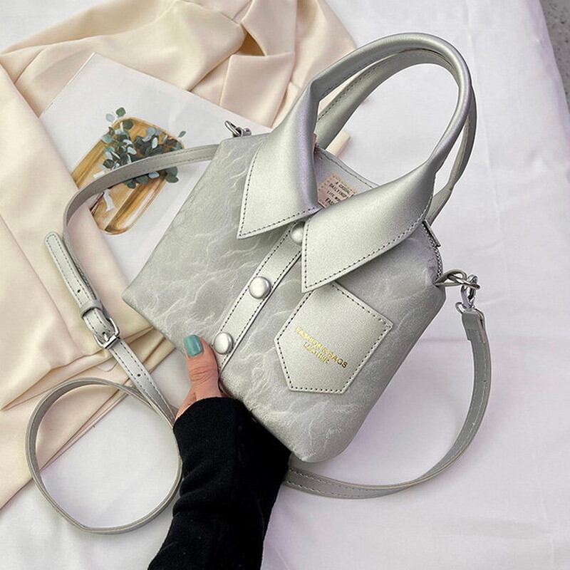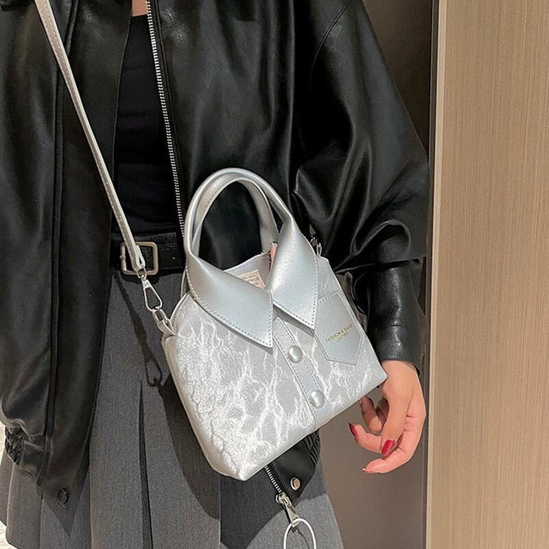 シャツの襟とボタンをモチーフにした、遊び心溢れるユニークなデザインのバッグです。 フロントのポケットディテールがアクセントになり、モードで知的な印象をプラスします。 手持ちでも肩掛けでも使える2WAY仕様で、着こなしに合わせたアレンジが可能。 コンパクトながら存在感があり、シンプルなコーディネートの主役として映えるバッグです。 ◼️サイズ 縦:18cm 横:21cm マチ:7cm ハンドル:9cm ショルダー:120cm ◼️カラー オフホワイト シルバー ピンク ブラック ◼️素材 ポリウレタン他 【お届けについて】 こちらの商品は海外店舗より直接発送となる為、ご入金から1〜3週間でお届けいたします。 ◼️注意事項 ・タイミングによっては 商品在庫切れにより注文キャンセルとさせていただく恐れもございますので、予めご了承くださいませ。 ・日本製とは検品基準が異なる為、縫製などが若干甘い場合があります。 ・海外倉庫にて保管をしております。在庫情報に時差が生じますため在庫切れや生産中止、生産に遅れがある場合は、受注後でもキャンセルさせていただく恐れがございます。 ・商品の色味は、お手持ちのスマートフォンの画面によって実物と若干異なる場合がございます。 ・発送時期によりデザイン仕様(細部、素材など)の変更がある場合がございます。 ・イメージ違いやサイズ交換等、お客さまご都合による交換、返品は対応出来かねます。 ———————————— 誠に恐れ入りますが、ご購入前に以下をご確認頂きご承諾の上お買い求めくださいませ。 →https://petitelune.official.ec/about ————————————