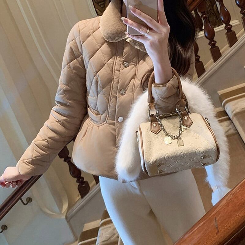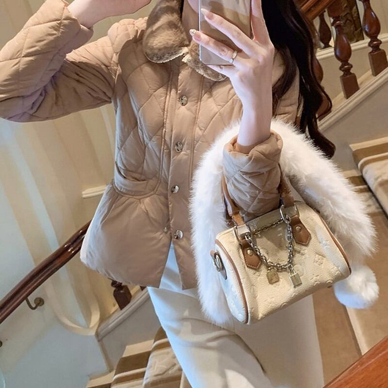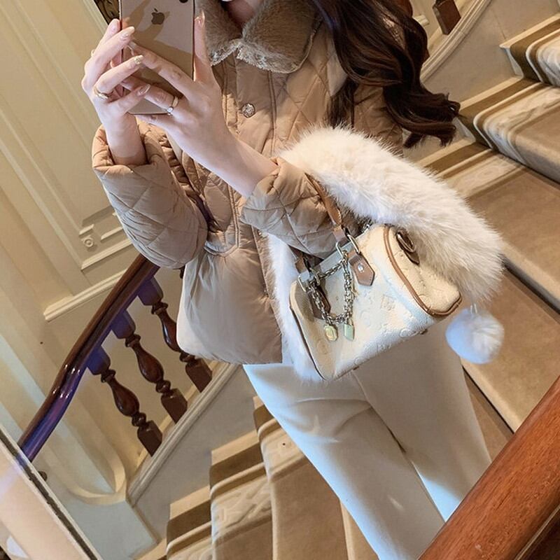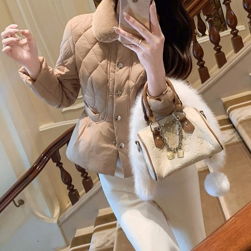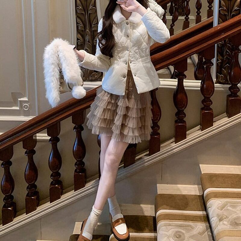 襟元に配されたファーが、お顔周りを華やかで温かく包み込むジャケットです。 全体に施された繊細なキルティングステッチが、上品で洗練された都会的な表情を演出します。 フロントに並ぶ煌めくビジューボタンがアクセントとなり、装いにラグジュアリーな品格をプラス。 程よくコンパクトなシルエットは、ボリュームのあるスカートとも相性が良くスタイルアップを叶える一着です。 ◼️サイズ 【S】 肩幅:39cm 胸囲:88cm 着丈:57cm 袖丈:59cm 【M】 肩幅:40cm 胸囲:92cm 着丈:58cm 袖丈:60cm 【L】 肩幅:41cm 胸囲:96cm 着丈:59cm 袖丈:61cm ◼️カラー ホワイト ブラウン ◼️素材 ポリエステル100% 【お届けについて】 こちらの商品は海外店舗より直接発送となる為、ご入金から1〜3週間でお届けいたします。 ◼️注意事項 ・タイミングによっては 商品在庫切れにより注文キャンセルとさせていただく恐れもございますので、予めご了承くださいませ。 ・日本製とは検品基準が異なる為、縫製などが若干甘い場合があります。 ・海外倉庫にて保管をしております。在庫情報に時差が生じますため在庫切れや生産中止、生産に遅れがある場合は、受注後でもキャンセルさせていただく恐れがございます。 ・商品の色味は、お手持ちのスマートフォンの画面によって実物と若干異なる場合がございます。 ・発送時期によりデザイン仕様(細部、素材など)の変更がある場合がございます。 ・イメージ違いやサイズ交換等、お客さまご都合による交換、返品は対応出来かねます。 ———————————— 誠に恐れ入りますが、ご購入前に以下をご確認頂きご承諾の上お買い求めくださいませ。 →https://petitelune.official.ec/about ————————————