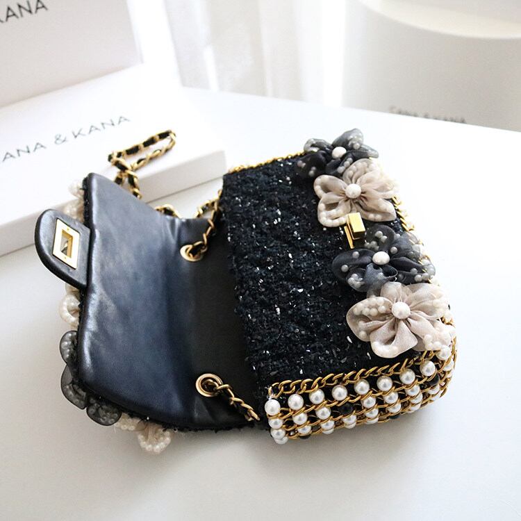 フラワーモチーフパールチェーンバッグ 00373