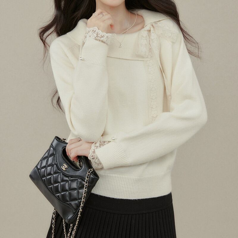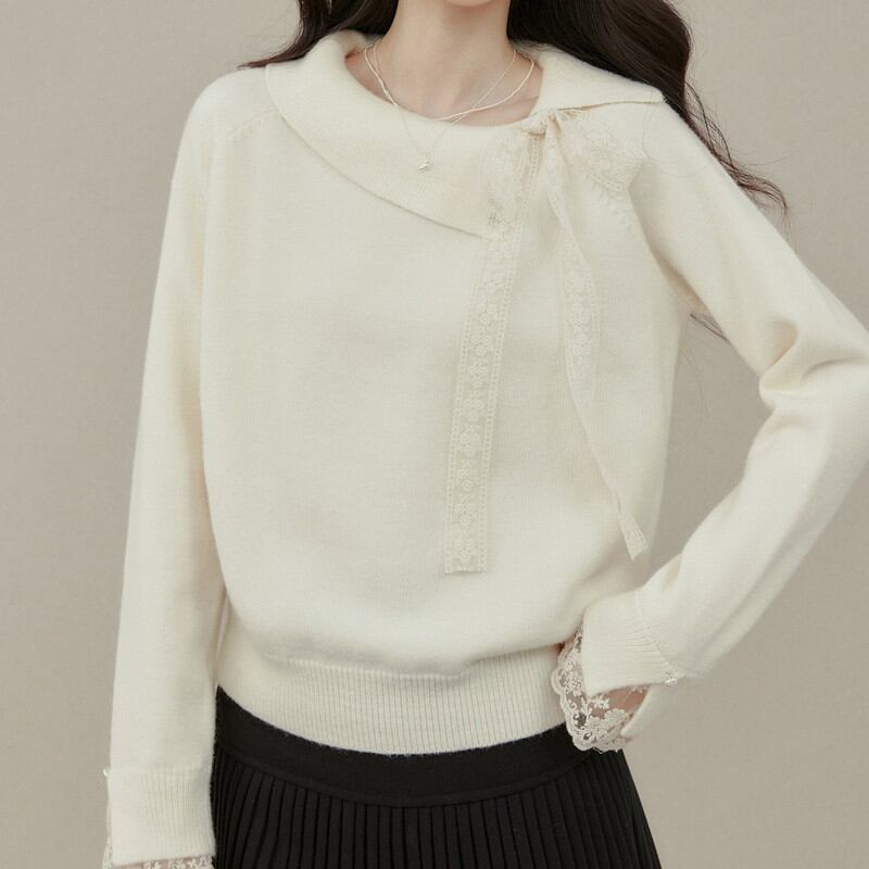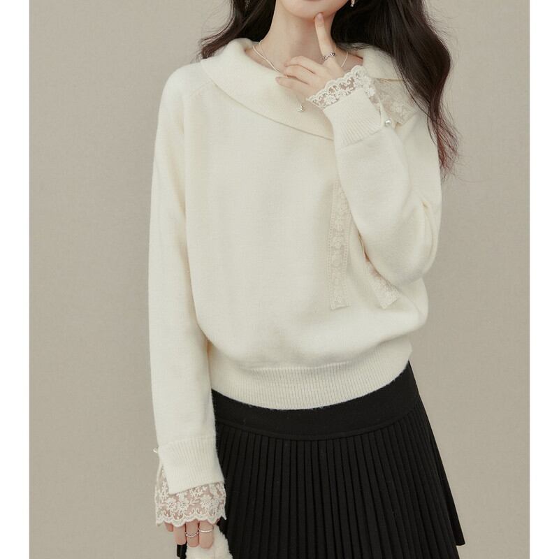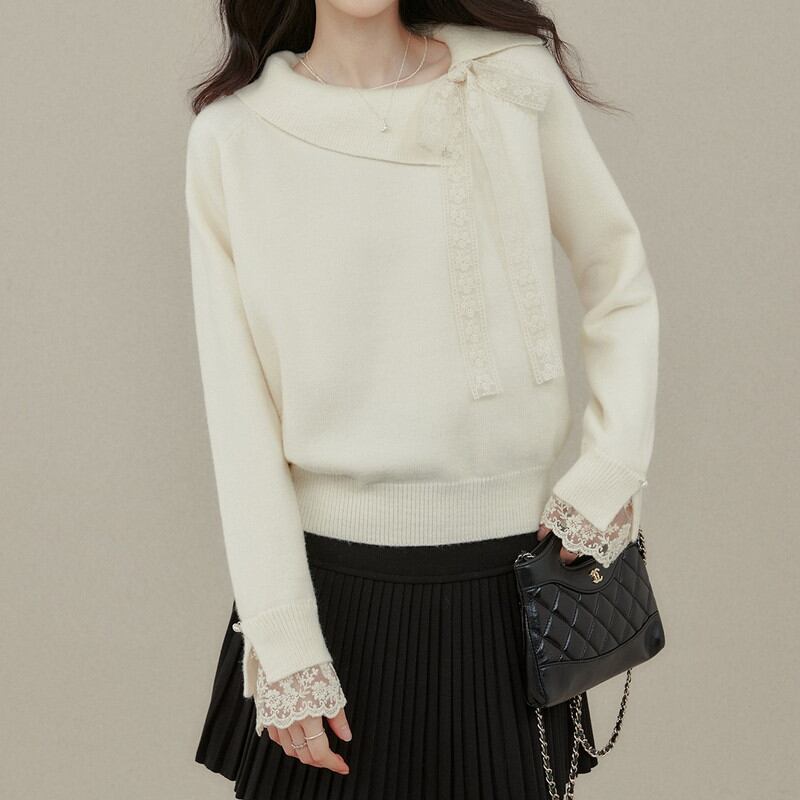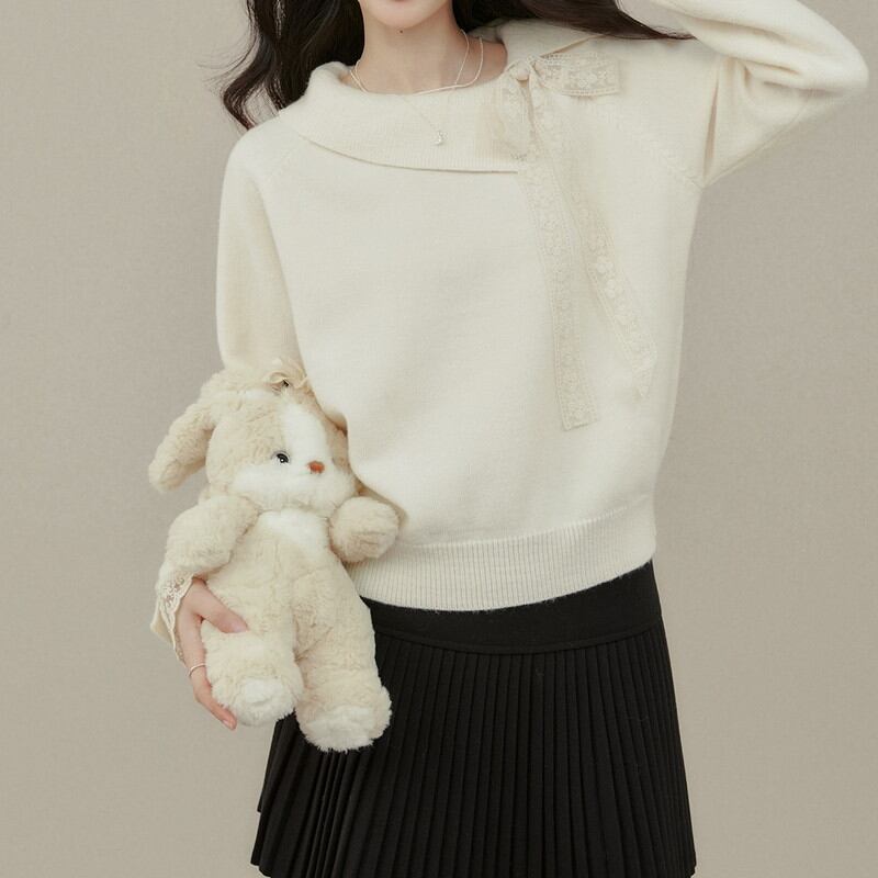 アシンメトリーにデザインされた襟元が、デコルテ周りにモダンで洗練された抜け感を演出するニットです。 サイドに配された繊細なレースリボンが、顔周りにクラシカルで柔らかな華やぎを添えます。 袖口からも覗く上品なレース使いが、手元までレディなこだわりを感じさせるディテールに。 程よく体にフィットする柔らかな質感が美しく、きれいめなスカートと合わせた品格漂う装いに最適な一着です。 ◼️サイズ 【S】 胸囲:96cm 着丈:56cm 袖丈:66cm 【M】 胸囲:100cm 着丈:57cm 袖丈:67cm 【L】 胸囲:104cm 着丈:58cm 袖丈:68cm 【XL】 胸囲:108cm 着丈:59cm 袖丈:69cm ◼️カラー アイボリー ◼️素材 ポリエステル30% アクリル42% ナイロン28% 【お届けについて】 こちらの商品は海外店舗より直接発送となる為、ご入金から1〜3週間でお届けいたします。 ◼️注意事項 ・タイミングによっては 商品在庫切れにより注文キャンセルとさせていただく恐れもございますので、予めご了承くださいませ。 ・日本製とは検品基準が異なる為、縫製などが若干甘い場合があります。 ・海外倉庫にて保管をしております。在庫情報に時差が生じますため在庫切れや生産中止、生産に遅れがある場合は、受注後でもキャンセルさせていただく恐れがございます。 ・商品の色味は、お手持ちのスマートフォンの画面によって実物と若干異なる場合がございます。 ・発送時期によりデザイン仕様(細部、素材など)の変更がある場合がございます。 ・イメージ違いやサイズ交換等、お客さまご都合による交換、返品は対応出来かねます。 ———————————— 誠に恐れ入りますが、ご購入前に以下をご確認頂きご承諾の上お買い求めくださいませ。 →https://petitelune.official.ec/about ————————————