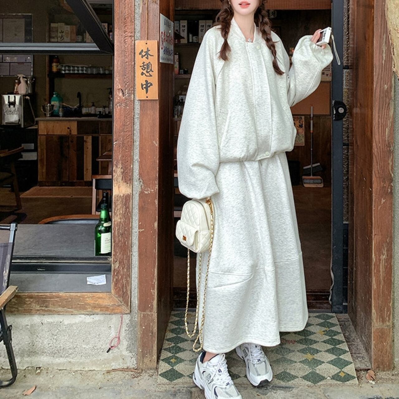 シンプルなノーカラージャケットと切り替えスカートのセットアップ。 スウェット仕立てがこなれたデザインで、普段使いしやすくちょっとしたお出かけにもぴったりです。 セットアップで着ることで統一感のある、こなれた大人スタイルが完成します。 ◼️サイズ 【S】 胸囲:124cm 袖丈:72cm ジャケット丈:54cm スカート丈:79cm ウエスト:56~78cm 【M】 胸囲:128cm 袖丈:73cm ジャケット丈:55cm スカート丈:80cm ウエスト:60~82cm 【L】 胸囲:132cm 袖丈:74cm ジャケット丈:56cm スカート丈:81cm ウエスト:64~86cm 【XL】 胸囲:136cm 袖丈:75cm ジャケット丈:57cm スカート丈:82cm ウエスト:68~90cm ※採寸方法により1~3cmの誤差がある場合がございます ◼️カラー グレー 【お届けについて】 こちらの商品は海外店舗より直接発送となる為、ご入金から1〜3週間でお届けいたします。 ◼️注意事項 ・タイミングによっては 商品在庫切れにより注文キャンセルとさせていただく恐れもございますので、予めご了承くださいませ。 ・日本製とは検品基準が異なる為、縫製などが若干甘い場合があります。 ・海外倉庫にて保管をしております。在庫情報に時差が生じますため在庫切れや生産中止、生産に遅れがある場合は、受注後でもキャンセルさせていただく恐れがございます。 ・商品の色味は、お手持ちのスマートフォンの画面によって実物と若干異なる場合がございます。 ・発送時期によりデザイン仕様(細部、素材など)の変更がある場合がございます。 ・イメージ違いやサイズ交換等、お客さまご都合による交換、返品は対応出来かねます。 ———————————— 誠に恐れ入りますが、ご購入前に以下をご確認頂きご承諾の上お買い求めくださいませ。 →https://petitelune.official.ec/about ————————————