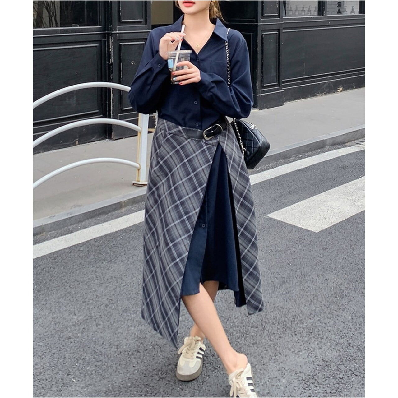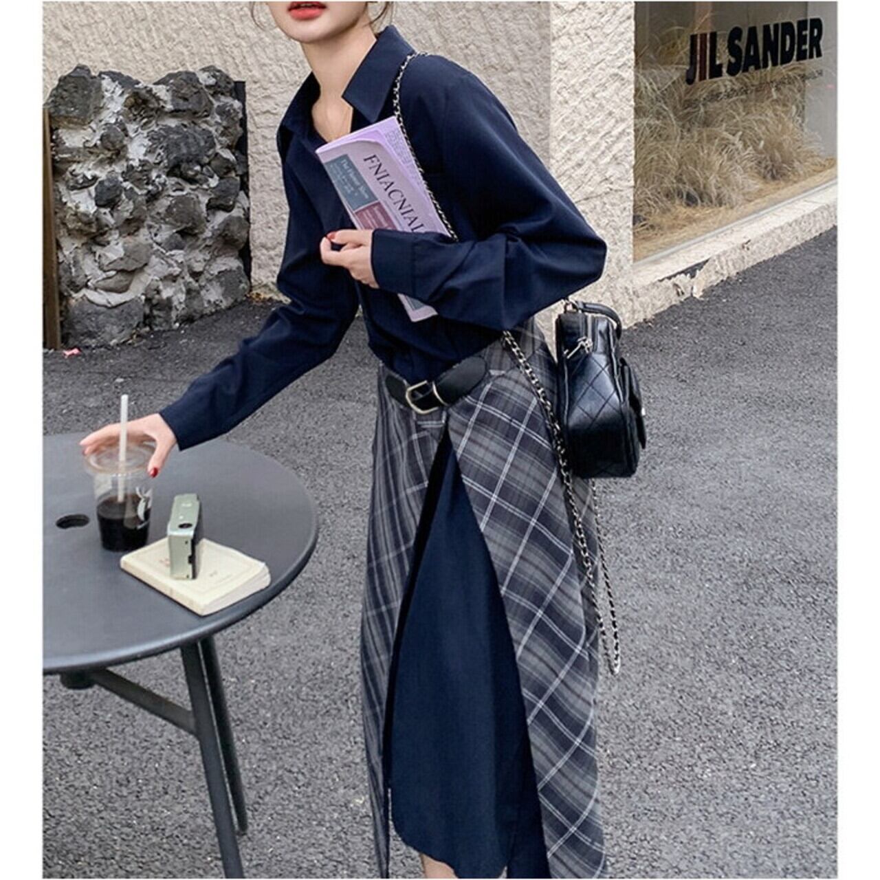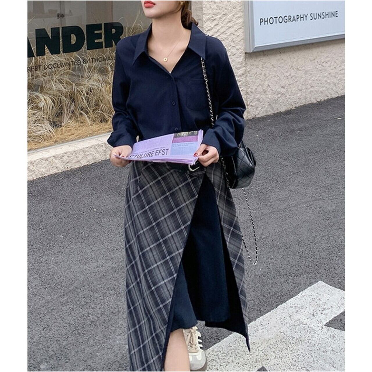 落ち着いた色合いで知的で上品な印象の、アシンメトリーデザインがシックなシャツワンピース。 オフィスシーンにも、休日の大人カジュアルにも活躍する一枚です。 ラップ風のスカートデザインが、さりげない個性を演出します。 ◼️サイズ 【S】 肩幅:45cm 胸囲:103cm 袖丈:56cm 着丈:113cm 【M】 肩幅:46cm 胸囲:104cm 袖丈:57cm 着丈:114cm 【L】 肩幅:47cm 胸囲:105cm 袖丈:58cm 着丈:115cm 【XL】 肩幅:48cm 胸囲:106cm 袖丈:59cm 着丈:116cm ※採寸方法により1~3cmの誤差がある場合がございます ◼️カラー ネイビー 【お届けについて】 こちらの商品は海外店舗より直接発送となる為、ご入金から1〜3週間でお届けいたします。 ◼️注意事項 ・タイミングによっては 商品在庫切れにより注文キャンセルとさせていただく恐れもございますので、予めご了承くださいませ。 ・日本製とは検品基準が異なる為、縫製などが若干甘い場合があります。 ・海外倉庫にて保管をしております。在庫情報に時差が生じますため在庫切れや生産中止、生産に遅れがある場合は、受注後でもキャンセルさせていただく恐れがございます。 ・商品の色味は、お手持ちのスマートフォンの画面によって実物と若干異なる場合がございます。 ・発送時期によりデザイン仕様(細部、素材など)の変更がある場合がございます。 ・イメージ違いやサイズ交換等、お客さまご都合による交換、返品は対応出来かねます。 ———————————— 誠に恐れ入りますが、ご購入前に以下をご確認頂きご承諾の上お買い求めくださいませ。 →https://petitelune.official.ec/about ————————————