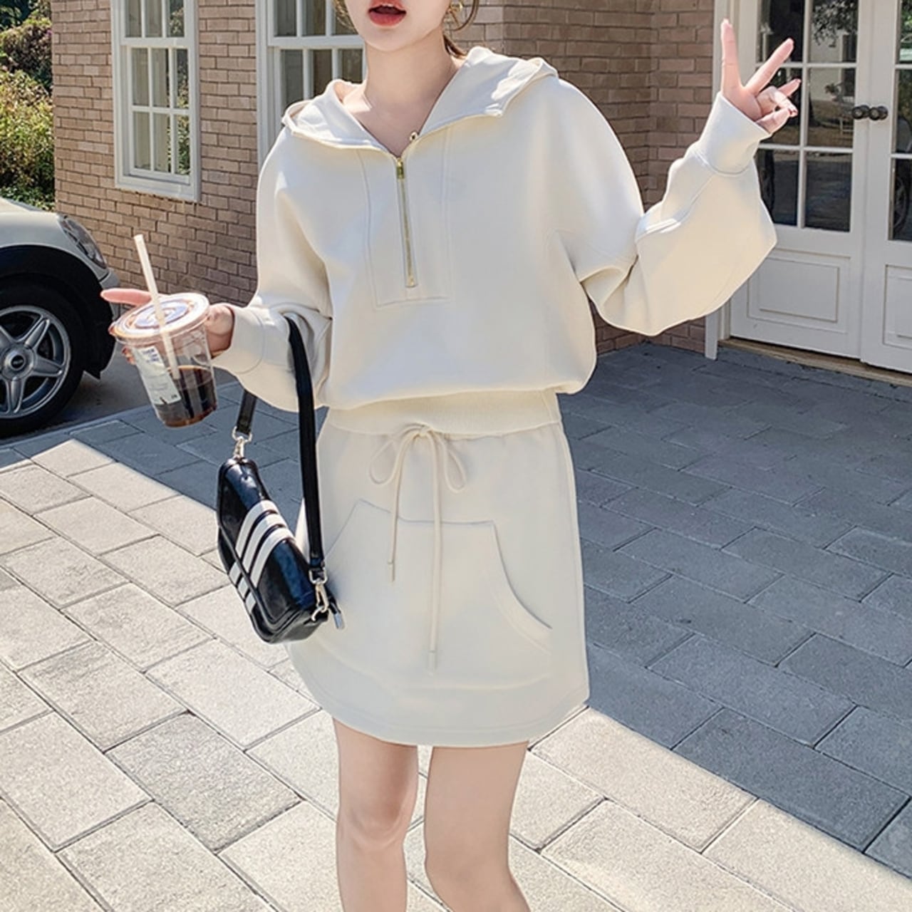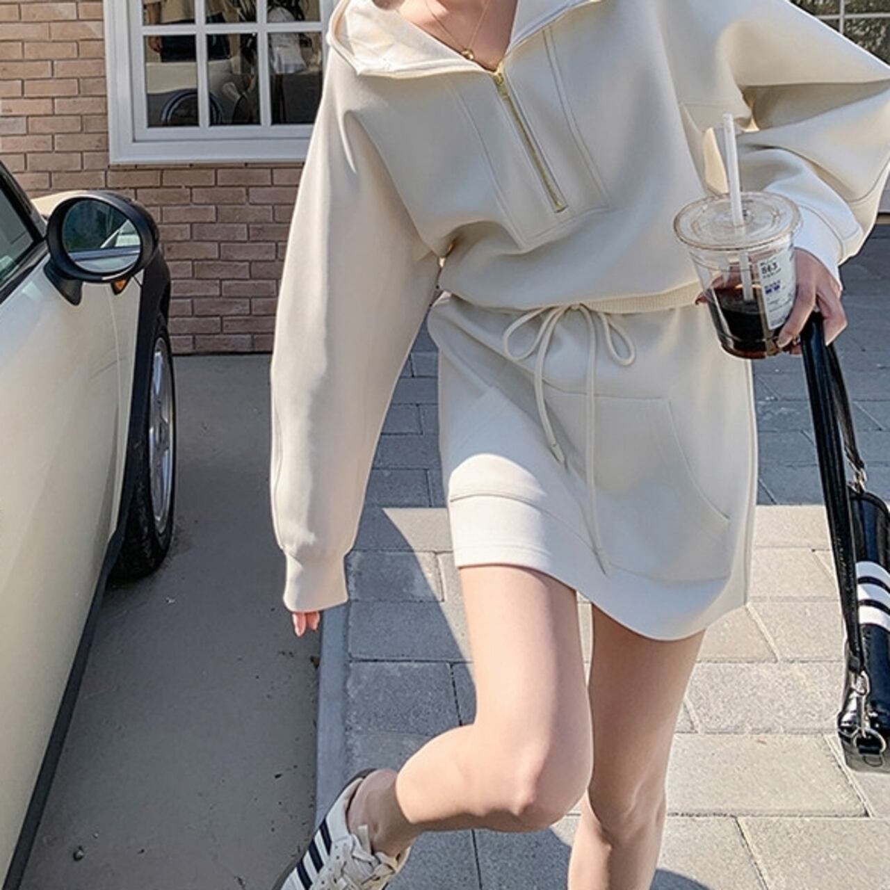 ハーフジップがポイントのスウェットトップスとミニスカートのセットアップ。 カジュアルながらも、どこか上品な印象を与えます。 ちょっとしたお出かけや、友達とのカフェ巡りにもぴったり。 セットアップで簡単にお洒落が完成し、それぞれ単品でも着回しが可能です。 ◼️サイズ 【S】 胸囲:98cm 袖丈:69cm トップス丈:55.5cm ウエスト:62cm スカート丈:36cm 【M】 胸囲:102cm 袖丈:70cm トップス丈:56.5cm ウエスト:66cm スカート丈:37cm 【L】 胸囲:106cm 袖丈:71cm トップス丈:57.5cm ウエスト:70cm スカート丈:38cm 【XL】 胸囲:110cm 袖丈:72cm トップス丈:58.5cm ウエスト:74cm スカート丈:39cm ※採寸方法により1~3cmの誤差がある場合がございます ◼️カラー オフホワイト レッドブラウン 【お届けについて】 こちらの商品は海外店舗より直接発送となる為、ご入金から1〜3週間でお届けいたします。 ◼️注意事項 ・タイミングによっては 商品在庫切れにより注文キャンセルとさせていただく恐れもございますので、予めご了承くださいませ。 ・日本製とは検品基準が異なる為、縫製などが若干甘い場合があります。 ・海外倉庫にて保管をしております。在庫情報に時差が生じますため在庫切れや生産中止、生産に遅れがある場合は、受注後でもキャンセルさせていただく恐れがございます。 ・商品の色味は、お手持ちのスマートフォンの画面によって実物と若干異なる場合がございます。 ・発送時期によりデザイン仕様(細部、素材など)の変更がある場合がございます。 ・イメージ違いやサイズ交換等、お客さまご都合による交換、返品は対応出来かねます。 ———————————— 誠に恐れ入りますが、ご購入前に以下をご確認頂きご承諾の上お買い求めくださいませ。 →https://petitelune.official.ec/about ————————————