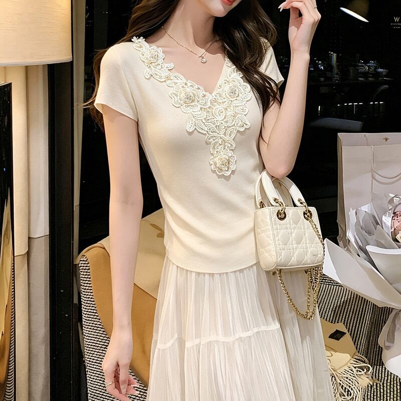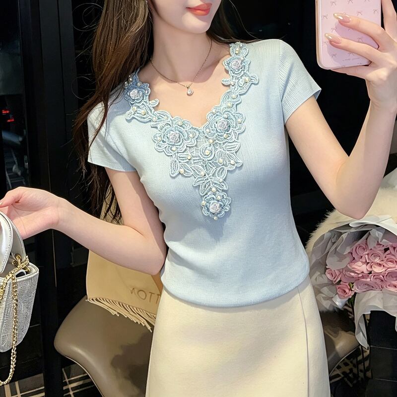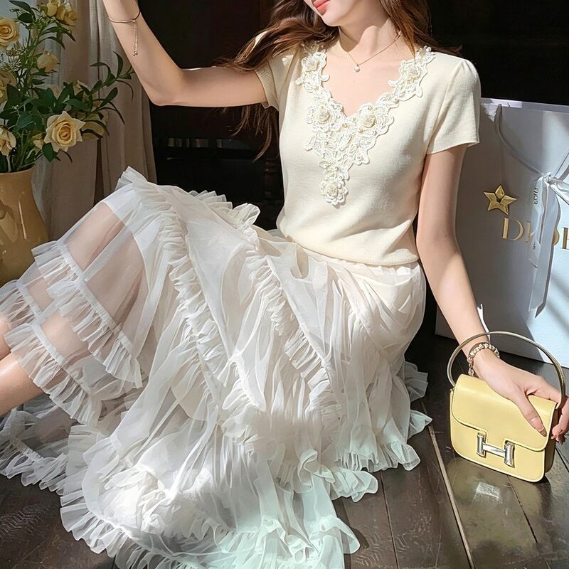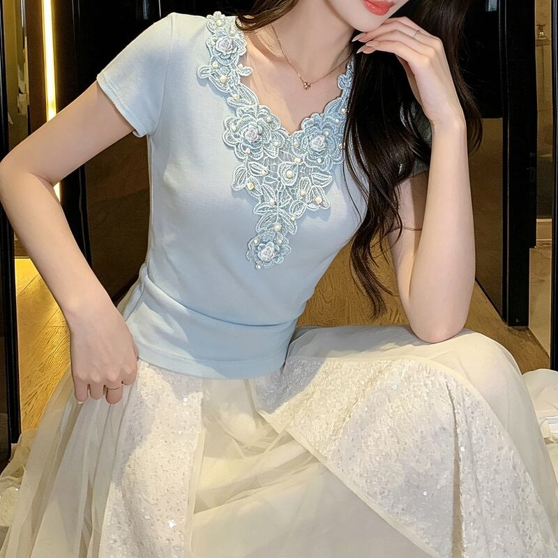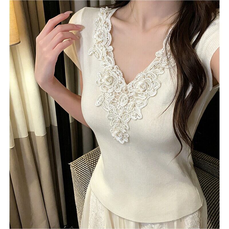 Vネックにレースをあしらい、上品で華やかな印象に仕立てたニットトップス。 普段使いはもちろん、パーティーシーンにもおすすめです。 シンプルなボトムスと合わせて、トップスを主役にしたコーディネートを楽しんで。 ◼️サイズ 【S】 肩幅:34cm 胸囲:78cm 着丈:50cm 袖丈:8cm 【M】 肩幅:35cm 胸囲:80cm 着丈:51cm 袖丈:9cm 【L】 肩幅:36cm 胸囲:82cm 着丈:52cm 袖丈:10cm ◼️カラー ブルー オフホワイト 【お届けについて】 こちらの商品は海外店舗より直接発送となる為、ご入金から1〜3週間でお届けいたします。 ◼️注意事項 ・タイミングによっては 商品在庫切れにより注文キャンセルとさせていただく恐れもございますので、予めご了承くださいませ。 ・日本製とは検品基準が異なる為、縫製などが若干甘い場合があります。 ・海外倉庫にて保管をしております。在庫情報に時差が生じますため在庫切れや生産中止、生産に遅れがある場合は、受注後でもキャンセルさせていただく恐れがございます。 ・商品の色味は、お手持ちのスマートフォンの画面によって実物と若干異なる場合がございます。 ・発送時期によりデザイン仕様(細部、素材など)の変更がある場合がございます。 ・イメージ違いやサイズ交換等、お客さまご都合による交換、返品は対応出来かねます。 ———————————— 誠に恐れ入りますが、ご購入前に以下をご確認頂きご承諾の上お買い求めくださいませ。 →https://petitelune.official.ec/about ————————————