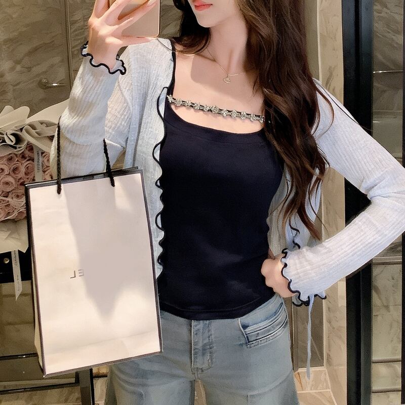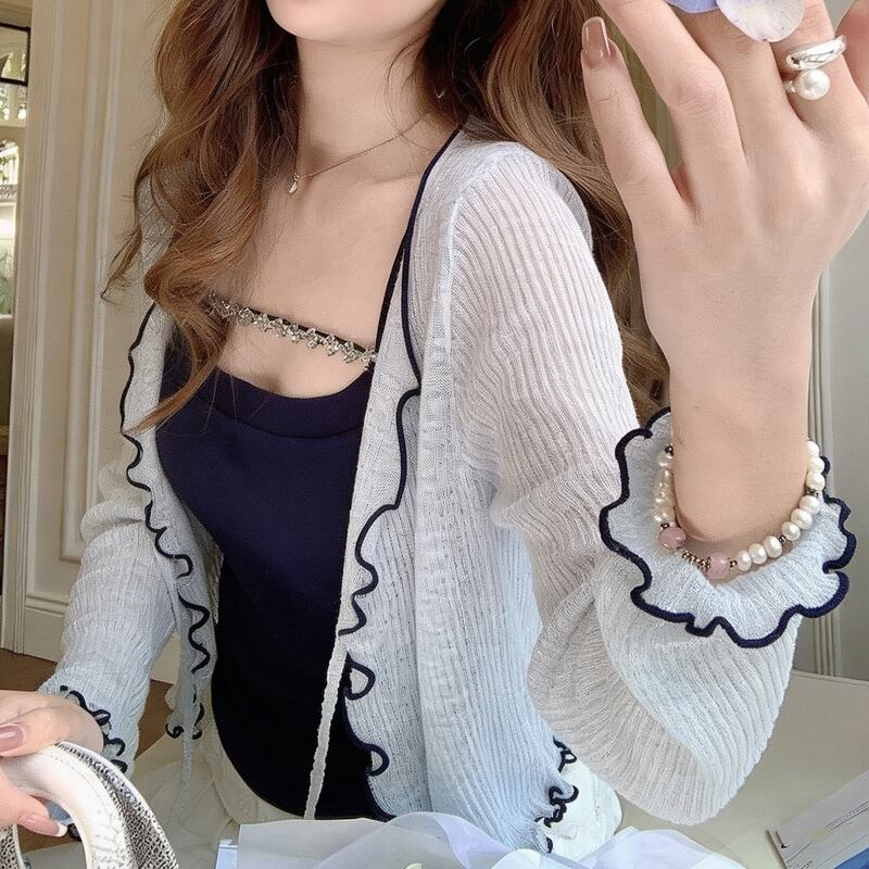 配色を施したフリルがアクセントになり、カジュアルながらも可愛らしい印象を与えます。
