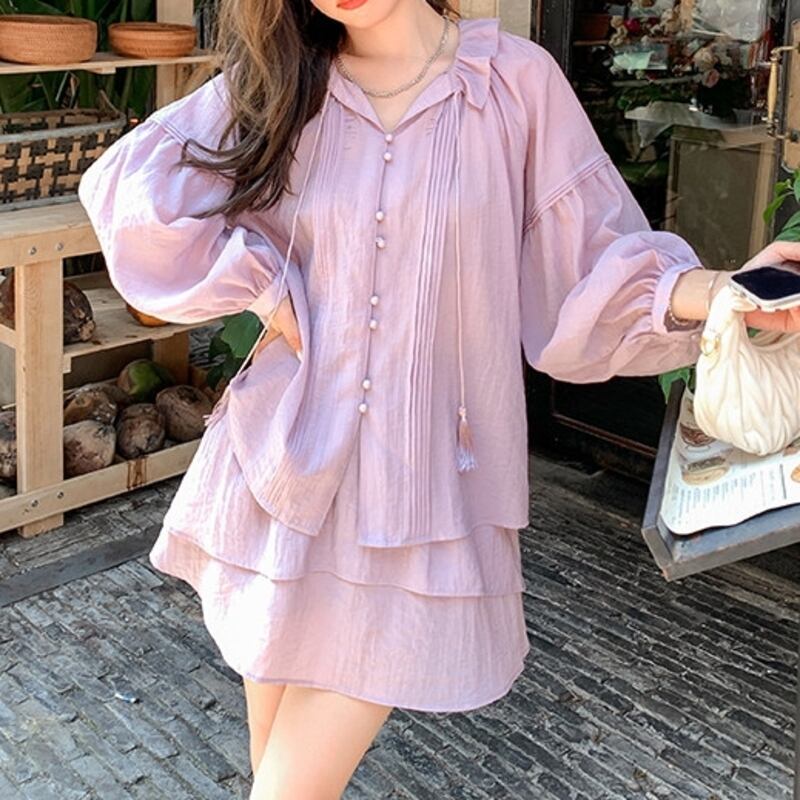 ピンタックフリルブラウス&フレアスカートセットアップ 00461