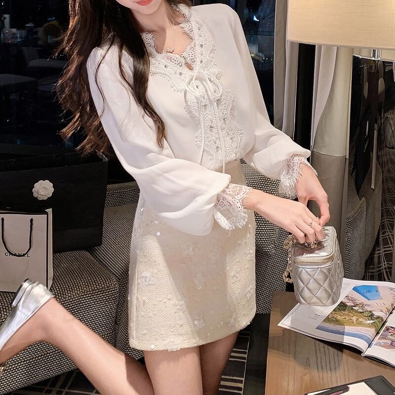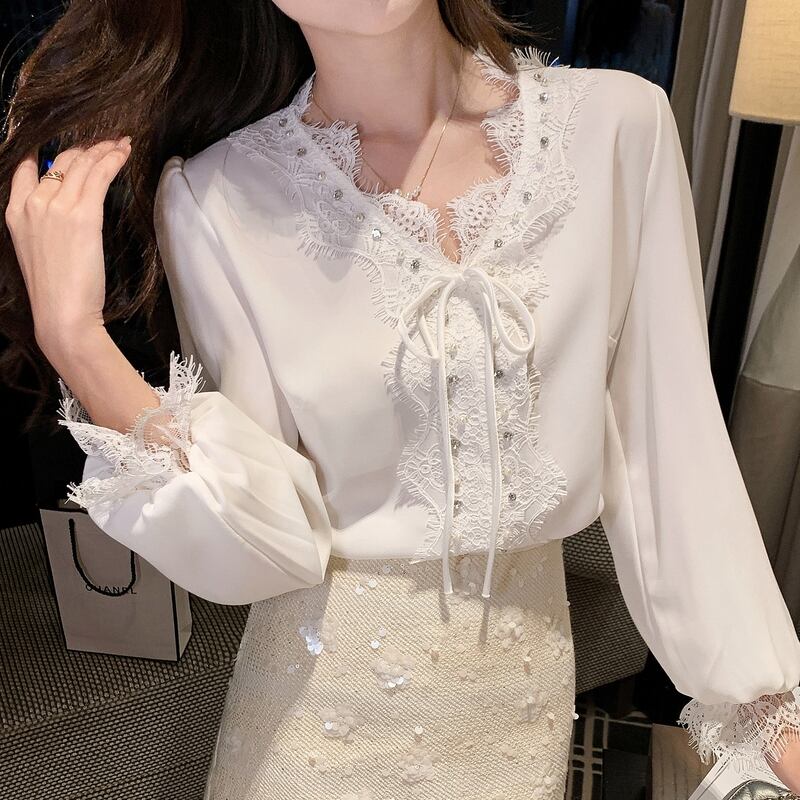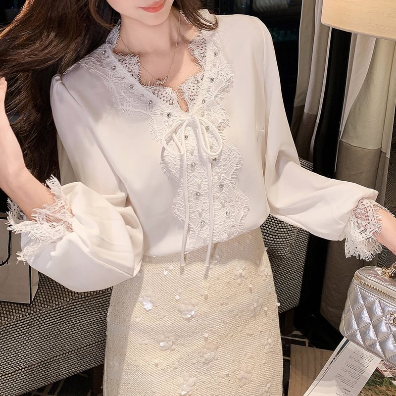アイラッシュレースVネックブラウス 00466
