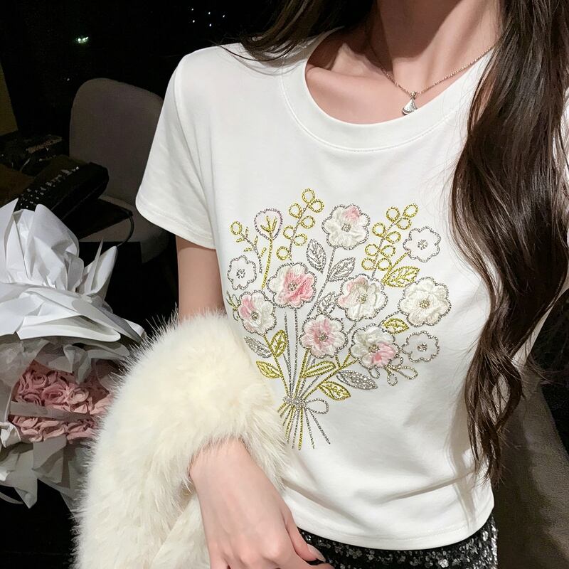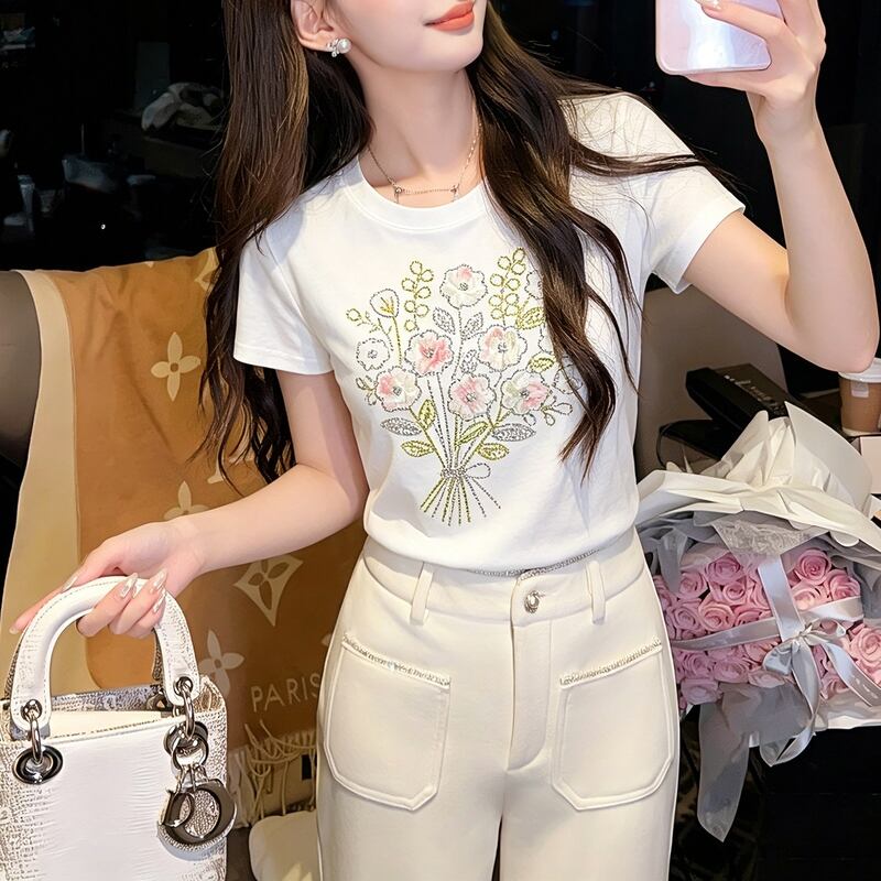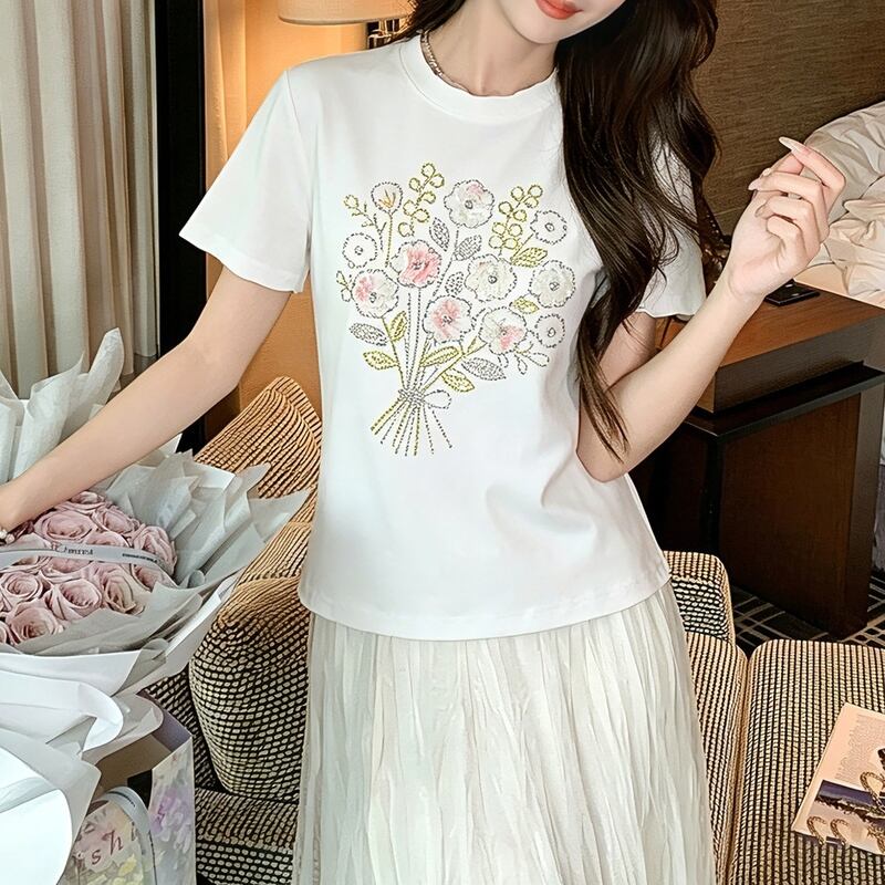 ブーケプリント半袖Tシャツ 00483