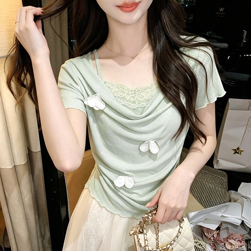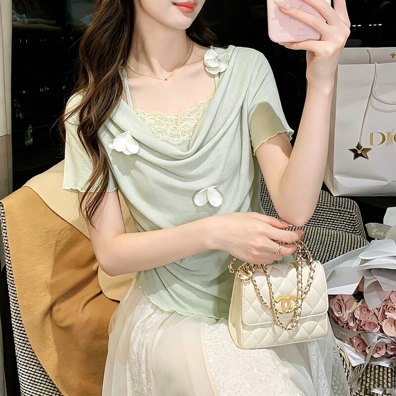 ドレープの効いたエレガントなシルエットに、繊細なレースと花モチーフがアクセント。 一枚で着るだけで、上品でフェミニンな印象を与えてくれるカットソーです。 普段使いはもちろん、お出かけシーンにも映えるデザインです。 ◼️サイズ 【S】 肩幅:40cm 胸囲:86cm 着丈:58cm 袖丈:17cm ウエスト:74cm 【M】 肩幅:41cm 胸囲:88cm 着丈:59cm 袖丈:18cm ウエスト:76cm 【L】 肩幅:42cm 胸囲:90cm 着丈:60cm 袖丈:19cm ウエスト:78cm ◼️カラー グリーン オフホワイト 【お届けについて】 こちらの商品は海外店舗より直接発送となる為、ご入金から1〜3週間でお届けいたします。 ◼️注意事項 ・タイミングによっては 商品在庫切れにより注文キャンセルとさせていただく恐れもございますので、予めご了承くださいませ。 ・日本製とは検品基準が異なる為、縫製などが若干甘い場合があります。 ・海外倉庫にて保管をしております。在庫情報に時差が生じますため在庫切れや生産中止、生産に遅れがある場合は、受注後でもキャンセルさせていただく恐れがございます。 ・商品の色味は、お手持ちのスマートフォンの画面によって実物と若干異なる場合がございます。 ・発送時期によりデザイン仕様(細部、素材など)の変更がある場合がございます。 ・イメージ違いやサイズ交換等、お客さまご都合による交換、返品は対応出来かねます。 ———————————— 誠に恐れ入りますが、ご購入前に以下をご確認頂きご承諾の上お買い求めくださいませ。 →https://petitelune.official.ec/about ————————————
