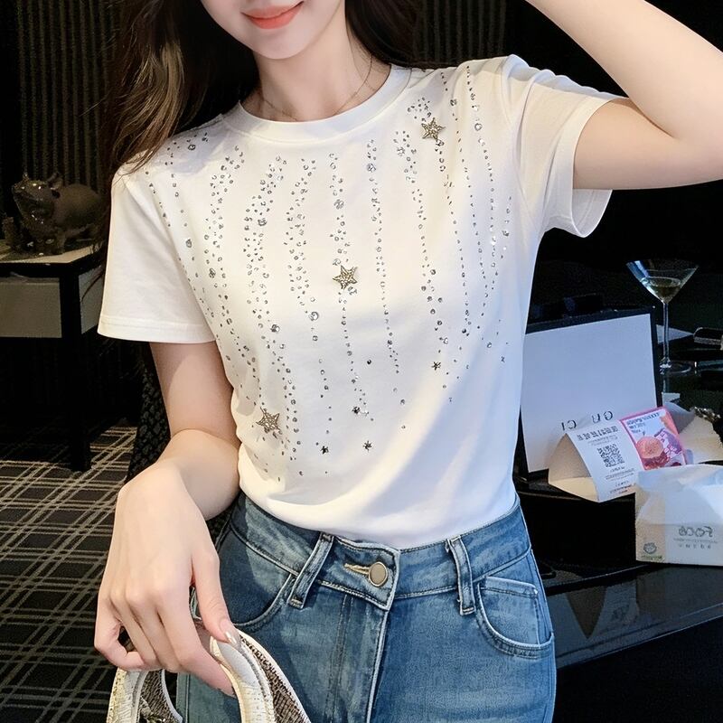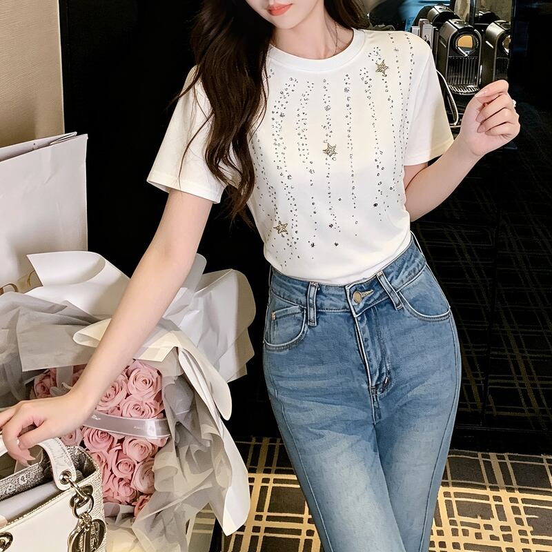ラインストーンスターモチーフ Tシャツ 00508