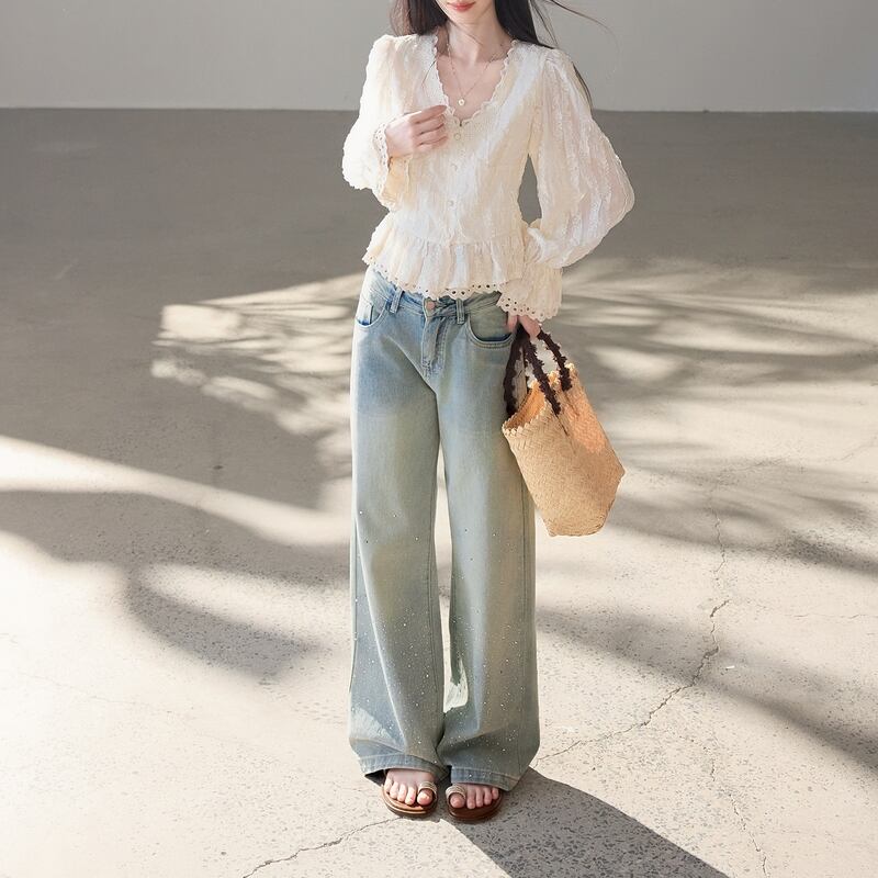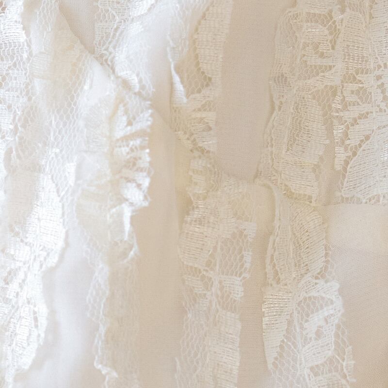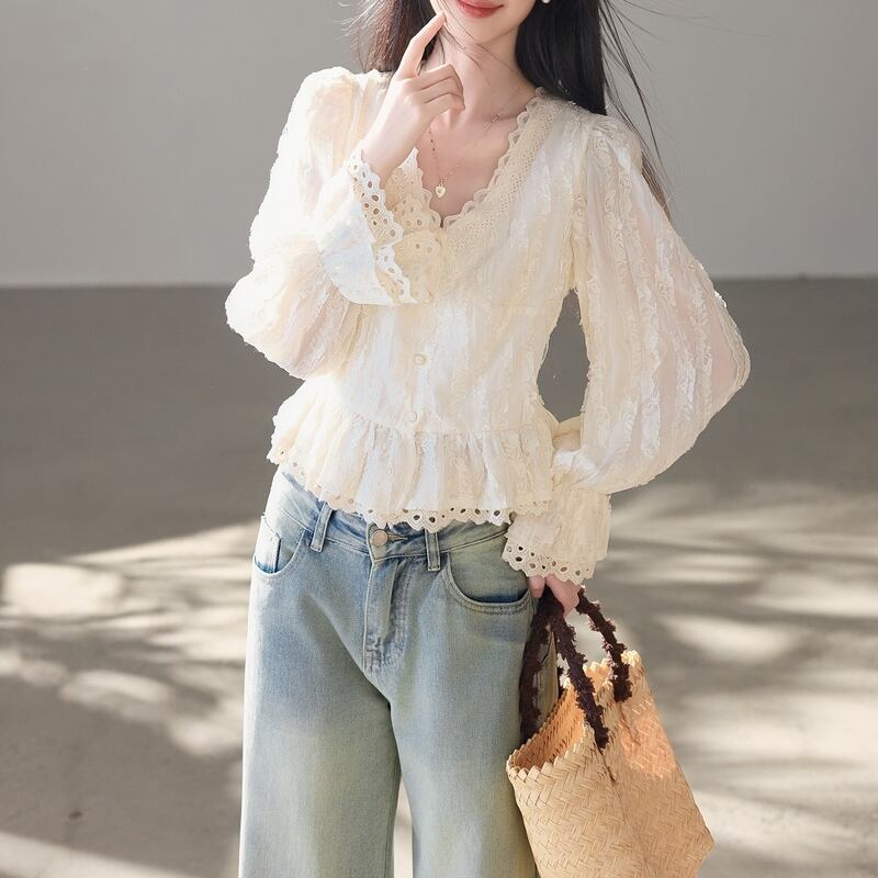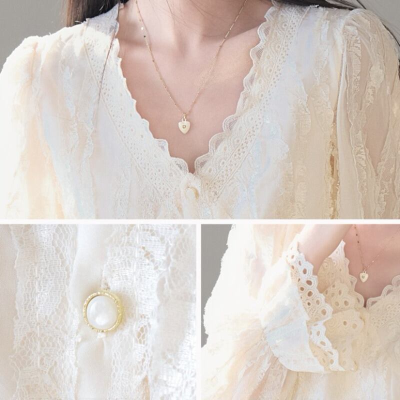 Vネックラインに施された繊細なレースが、顔周りを優しく華やかに彩ります。 華やかなレースのディテールが、日常に上品なアクセントをプラスする一枚です。 デニムのようなカジュアルなボトムスと合わせれば、甘さを抑えた大人カジュアルな着こなしに。 きれいめなスカートやパンツとのコーディネートは、お出かけシーンにもぴったりです。 ◼️サイズ 【S】 肩幅:36cm 胸囲:92cm 着丈:54.5cm 袖丈:62cm 袖口:20cm 【M】 肩幅:37cm 胸囲:96cm 着丈:55.5cm 袖丈:63cm 袖口:21cm 【L】 肩幅:38cm 胸囲:100cm 着丈:56.5cm 袖丈:64cm 袖口:22cm ※採寸方法により1~3cmの誤差がある場合がございます ◼️カラー オフホワイト ◼️素材 ポリエステル100% 【お届けについて】 こちらの商品は海外店舗より直接発送となる為、ご入金から1〜3週間でお届けいたします。 ◼️注意事項 ・タイミングによっては 商品在庫切れにより注文キャンセルとさせていただく恐れもございますので、予めご了承くださいませ。 ・日本製とは検品基準が異なる為、縫製などが若干甘い場合があります。 ・海外倉庫にて保管をしております。在庫情報に時差が生じますため在庫切れや生産中止、生産に遅れがある場合は、受注後でもキャンセルさせていただく恐れがございます。 ・商品の色味は、お手持ちのスマートフォンの画面によって実物と若干異なる場合がございます。 ・発送時期によりデザイン仕様(細部、素材など)の変更がある場合がございます。 ・イメージ違いやサイズ交換等、お客さまご都合による交換、返品は対応出来かねます。 ———————————— 誠に恐れ入りますが、ご購入前に以下をご確認頂きご承諾の上お買い求めくださいませ。 →https://petitelune.official.ec/about ————————————